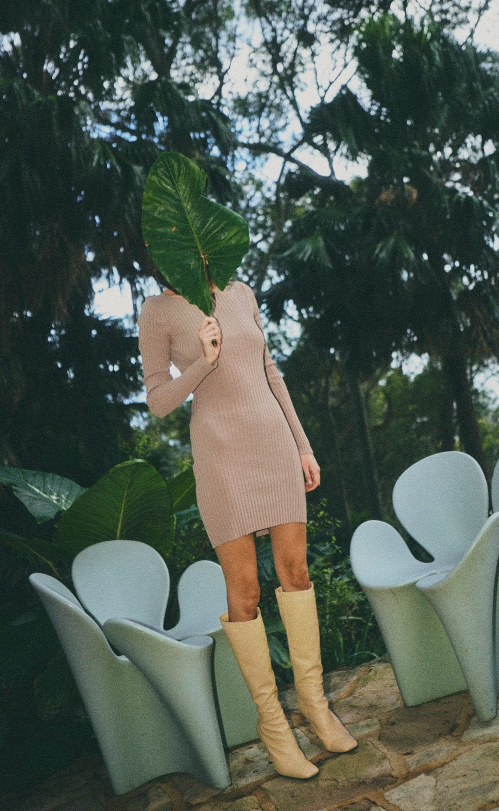 Lyla Knit Long Sleeve Mini Dress Fawn