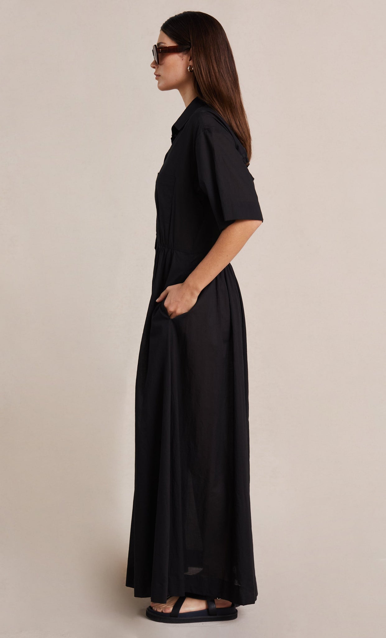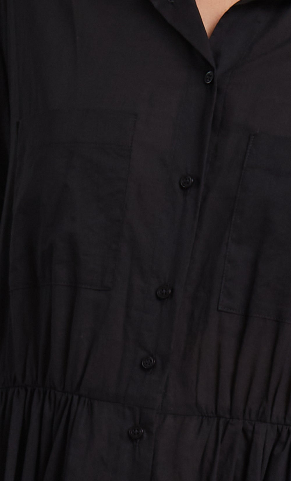 The Novia Shirt Dress is an easy-to-wear style cut from a breezy cotton fabric. The dress features a relaxed fit with a neat collar, front button placket closure and oversized elbow length sleeves. Complete with a back yoke cutout and patch pockets.