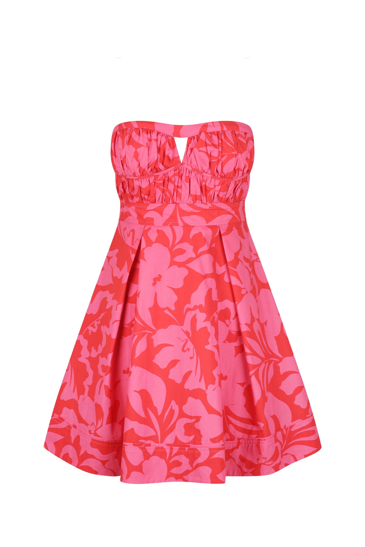 Strapless ruched bodice mini dress in the exclusive Antonia print in a GOTS certified organic cotton.