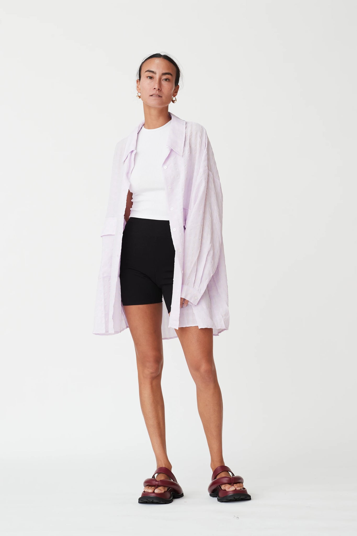 A ribbed bike short for a textural touch, perfect to pair with oversized shirts and blazers.