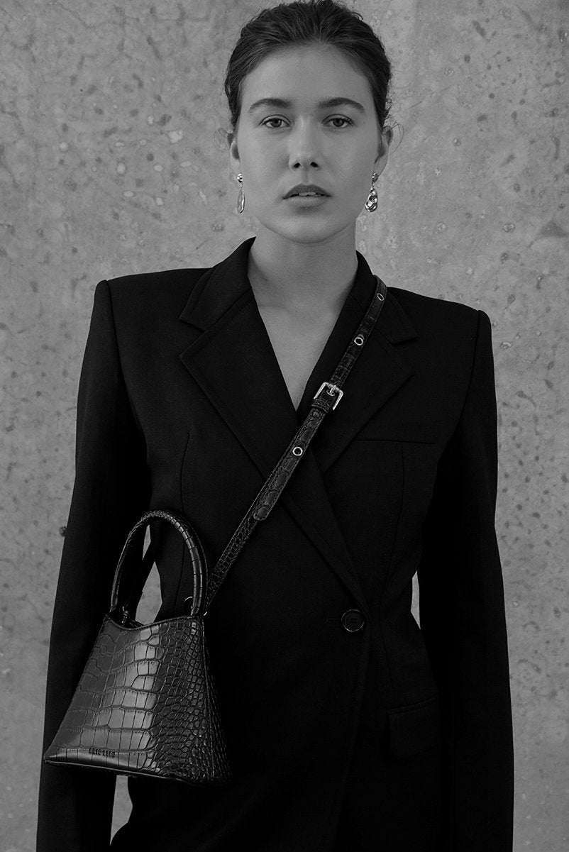 The Mini Chloe is a 90's inspired mini handbag with a detachable cross-body strap, structured handle, cotton canvas lining and brass hardware. Perfect for nights out, yet big enough to fit your everyday essentials.