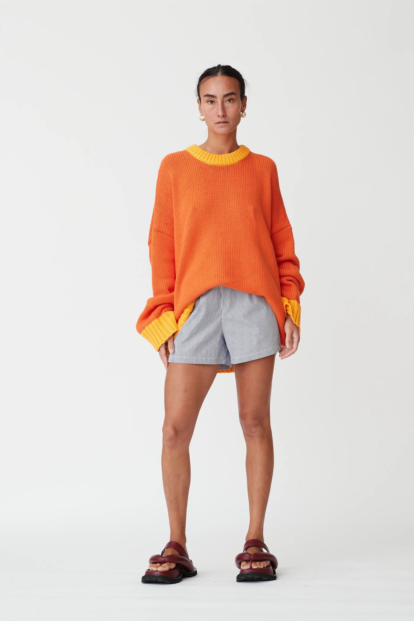 Blanca's Chambord is a chunky oversized style with contrast rib knit cuffs in a retro inspired palette.