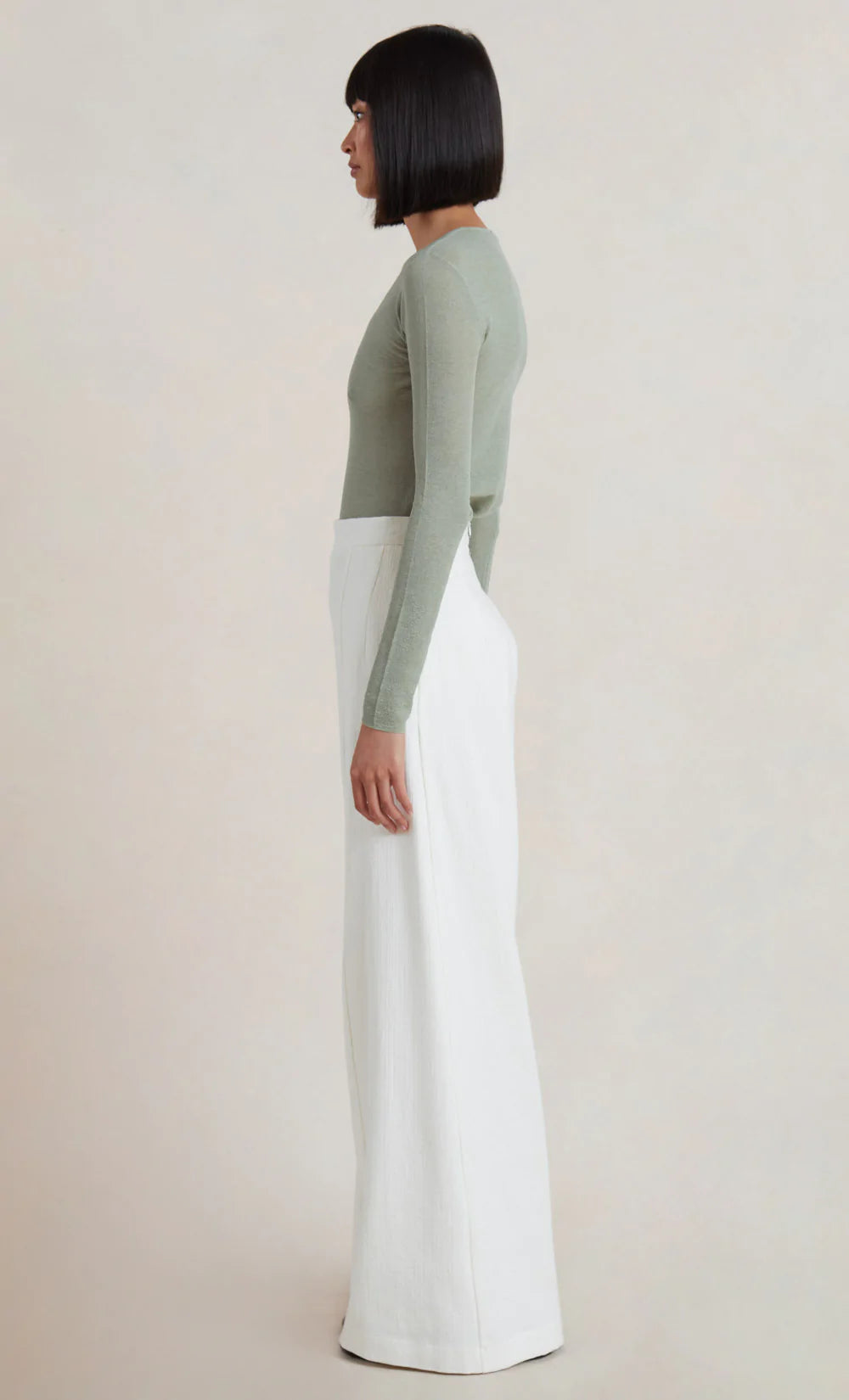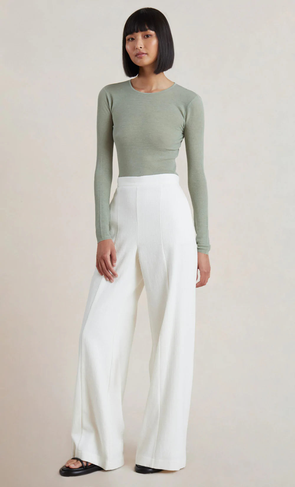 A wardrobe staple, the Cindy Crewneck Top is spun from a soft knit blend. The versatile long-sleeved top is finished with a narrow rib at neckline.