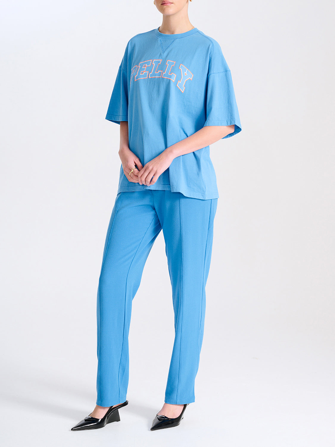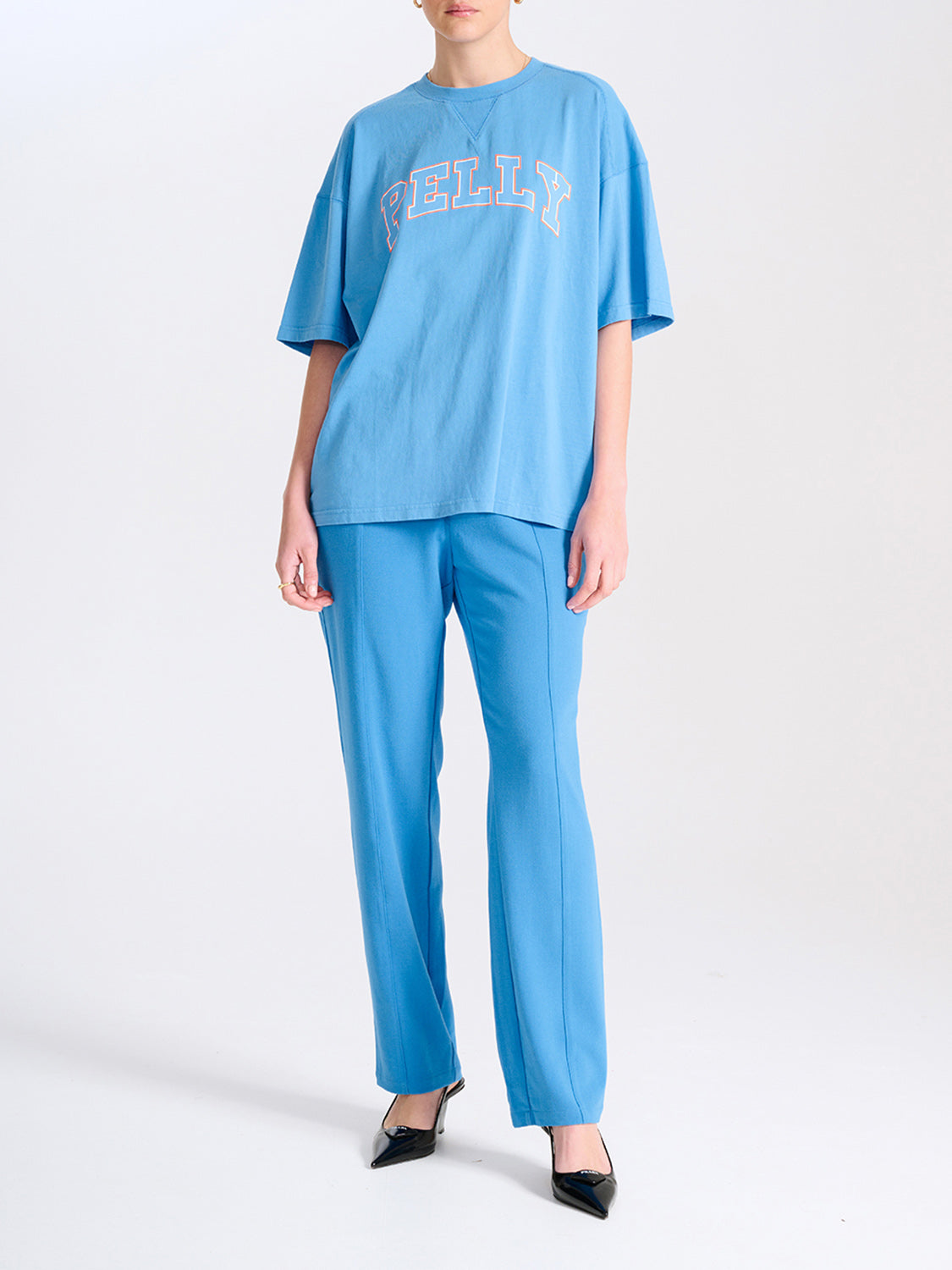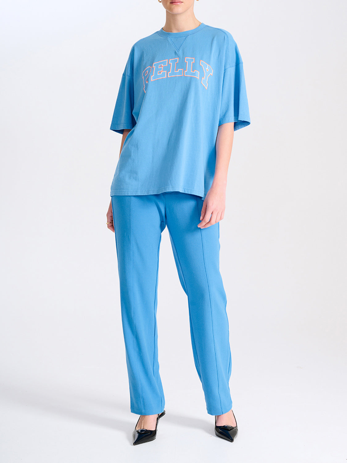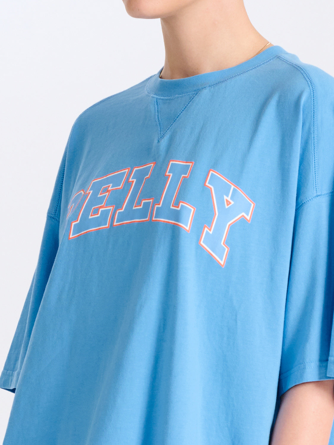 Description: Our best selling Collegiate Pelly Tee is now available in an updated colourway. Designed for an oversized fit and crafted from our recycled cotton blend jersey the tee features a branded collegiate style print, designed in house.