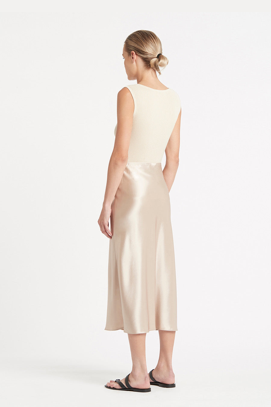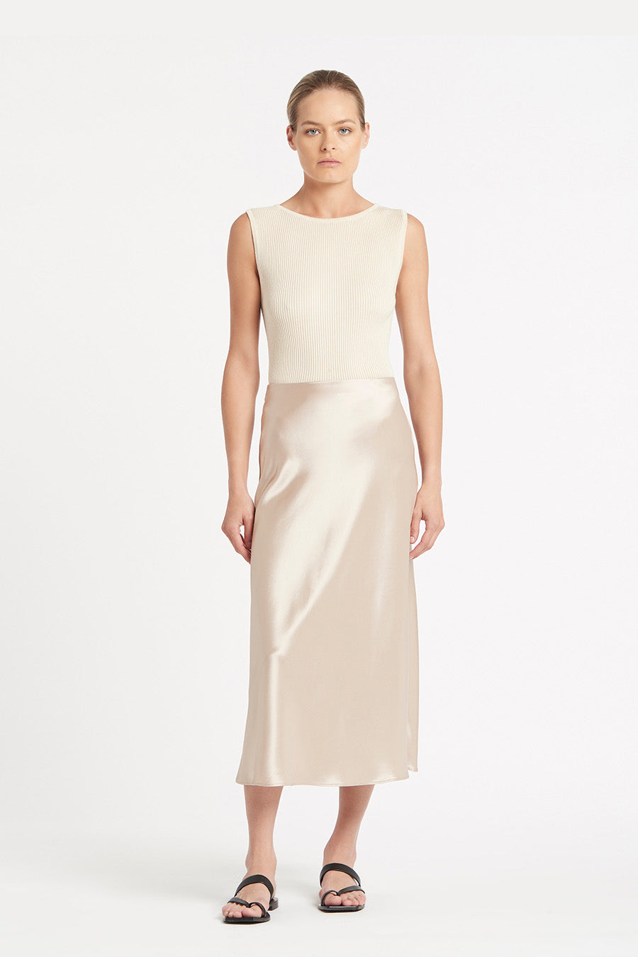 Friend Of Audrey chic bias cut midi skirt designed in a silky fabrication with an elastic waist. A core wardrobe item.