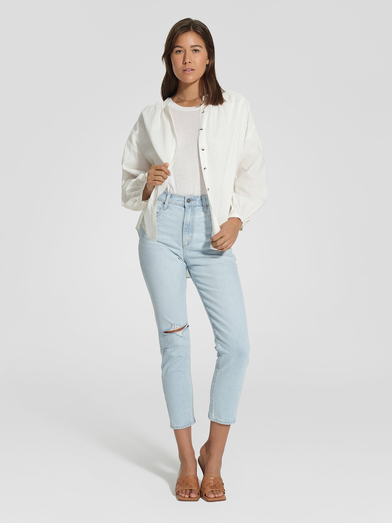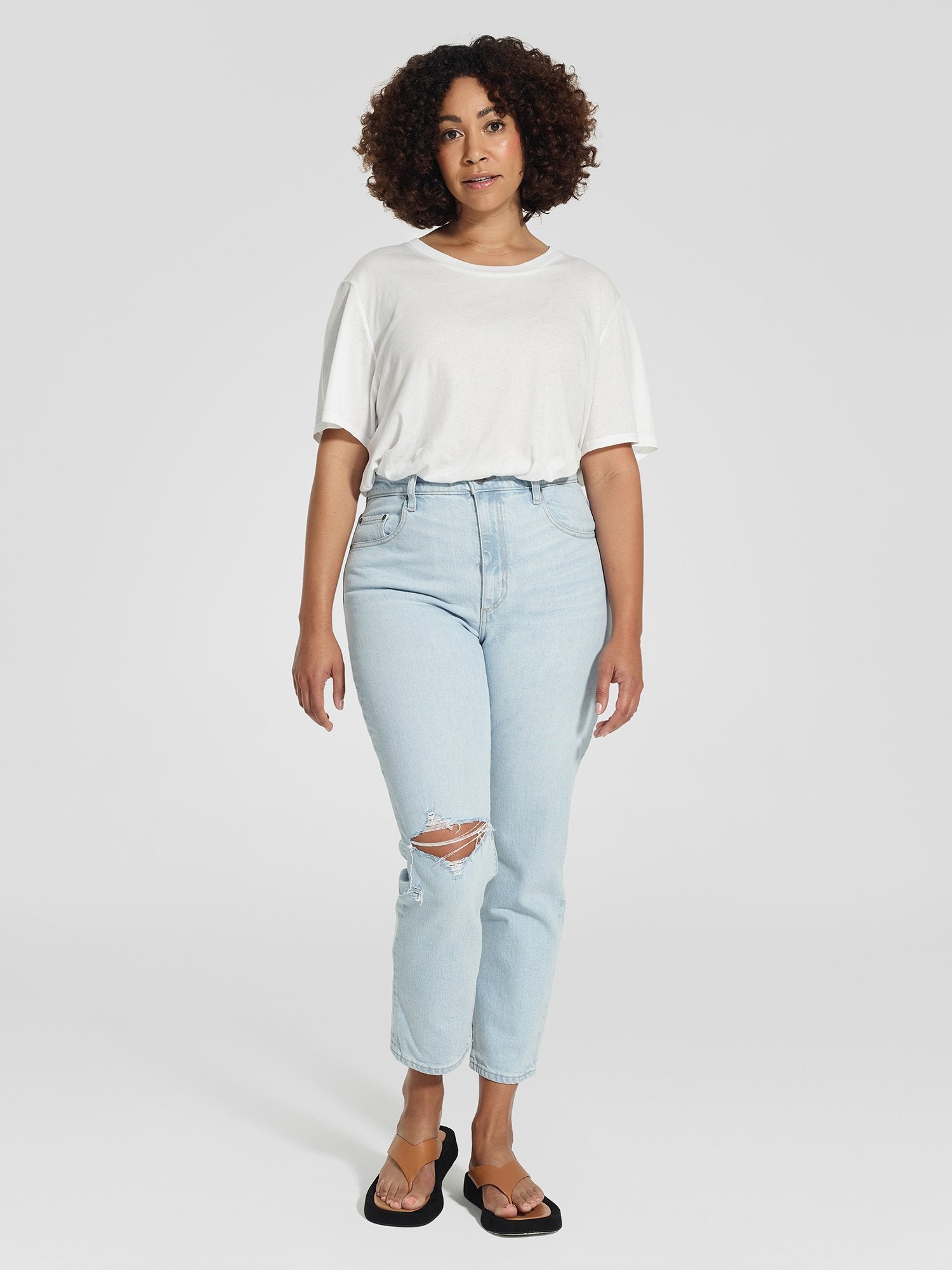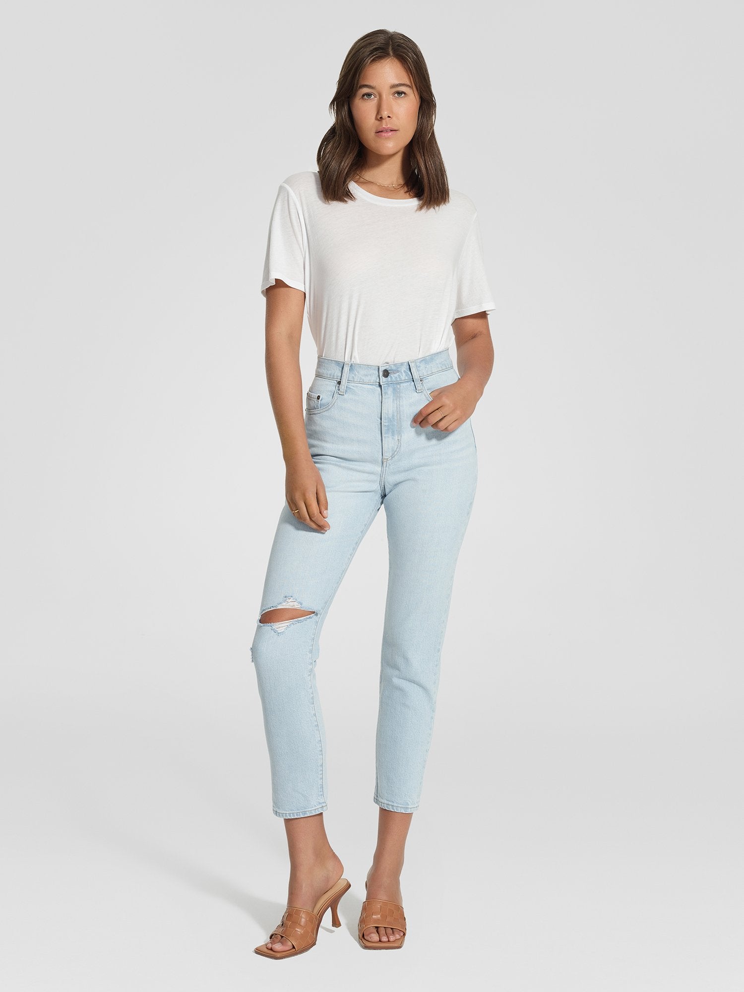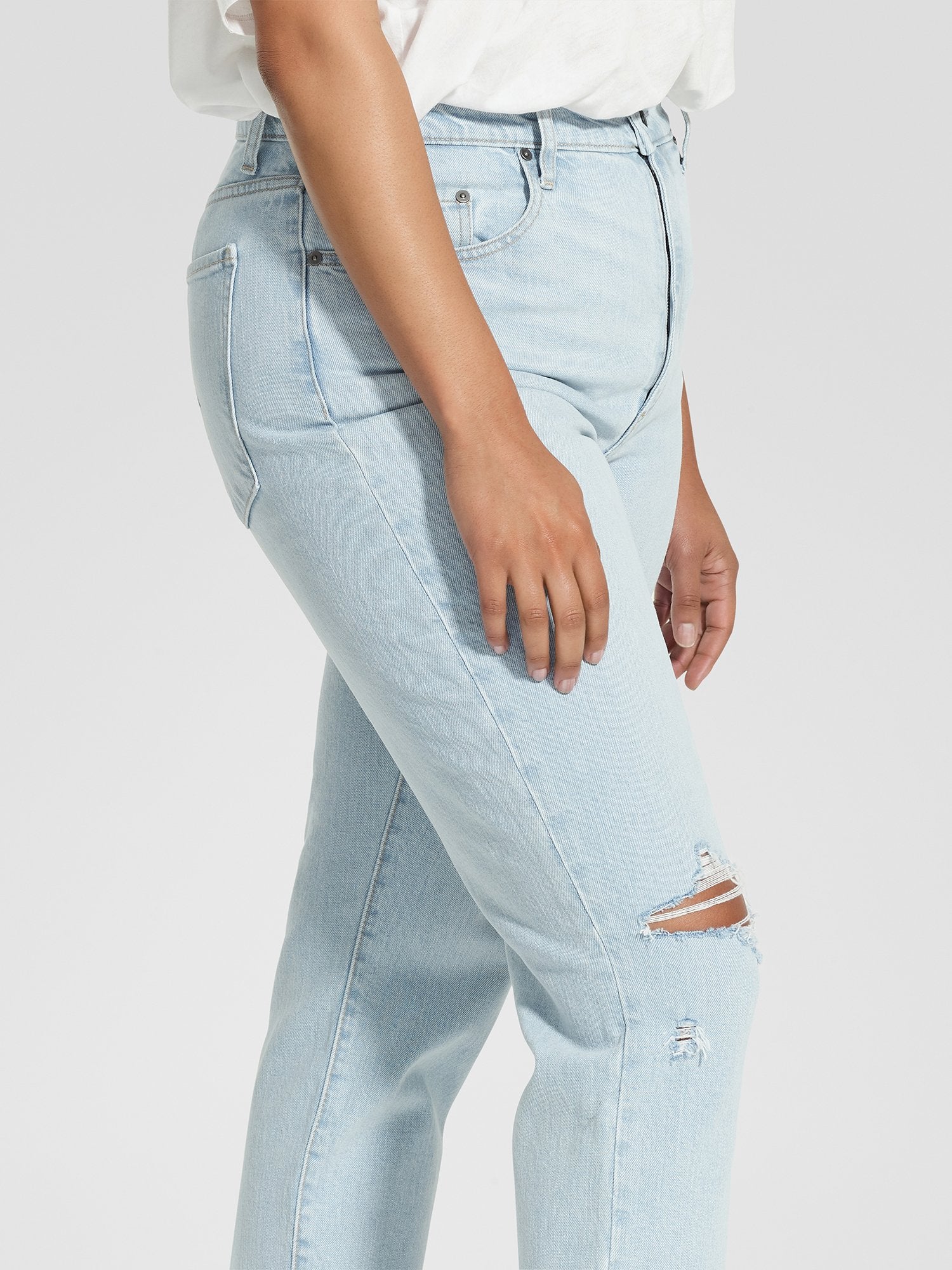 The cult favourite Frankie Jean Ankle Stretch reimagined in the perfect summer wash - Hazey. Crafted from a Comfort Stretch Denim for every day comfort. Featuring an Ultra-High Rise, Single Knee Rip and Clean Hem. Go from beach to bar with Frankie Ankle Stretch, Hazey.