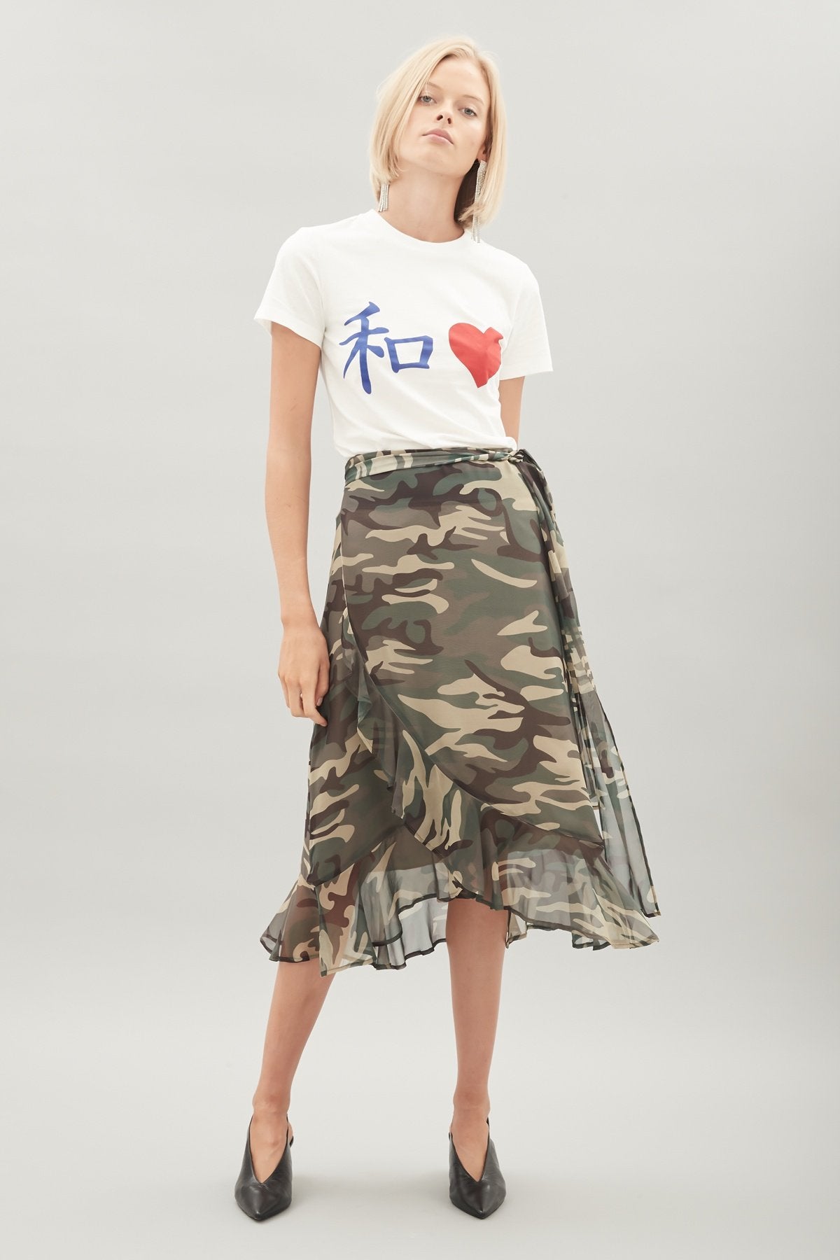 The Hansen & Gretel Felix skirt features a wrap front with ruffle detail to the hem