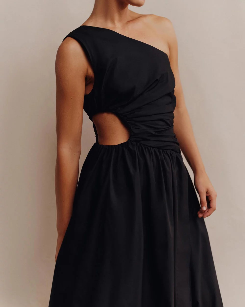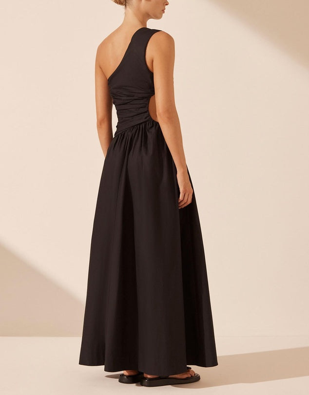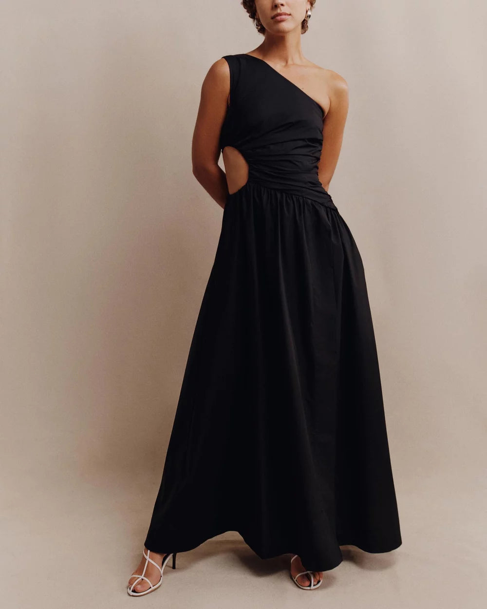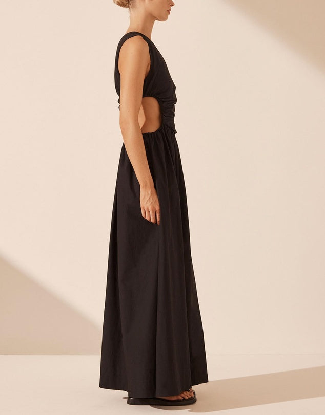 Asymmetrical maxi dress with cut out side detail in a GOTS certified organic cotton. Our Organic Cotton is certified by the Global Organic Textile Standard (GOTS) to ensure best practices are maintained from seed to final product. Crisp...Read more