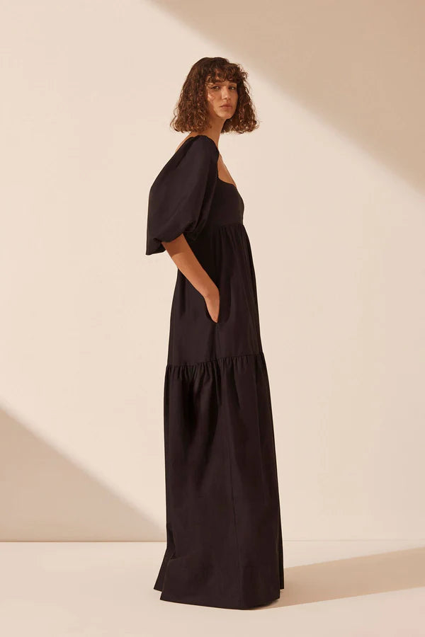 Short sleeve square neck maxi dress in a GOTS certified organic cotton. Our Organic Cotton is certified by the Global Organic Textile Standard (GOTS) to ensure best practices are maintained from seed to final product. Crisp cotton poplin...Read more