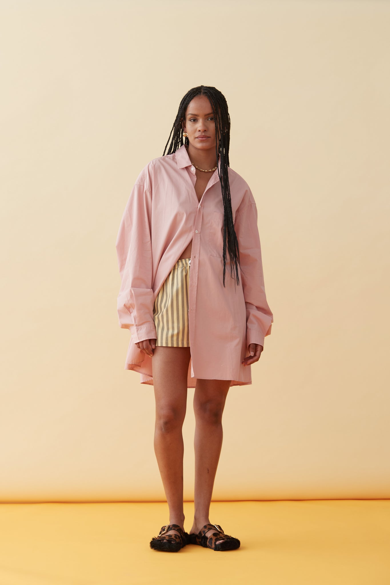 A long line button-down shirt, the Jude is an easy to wear style featuring a graduated hem in a solid rose colour.