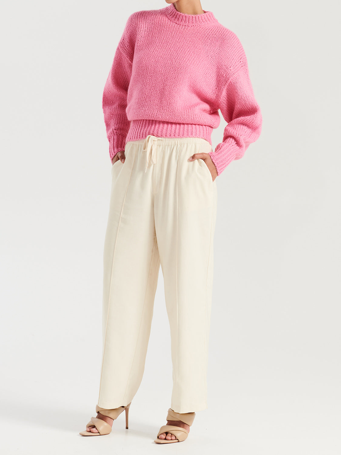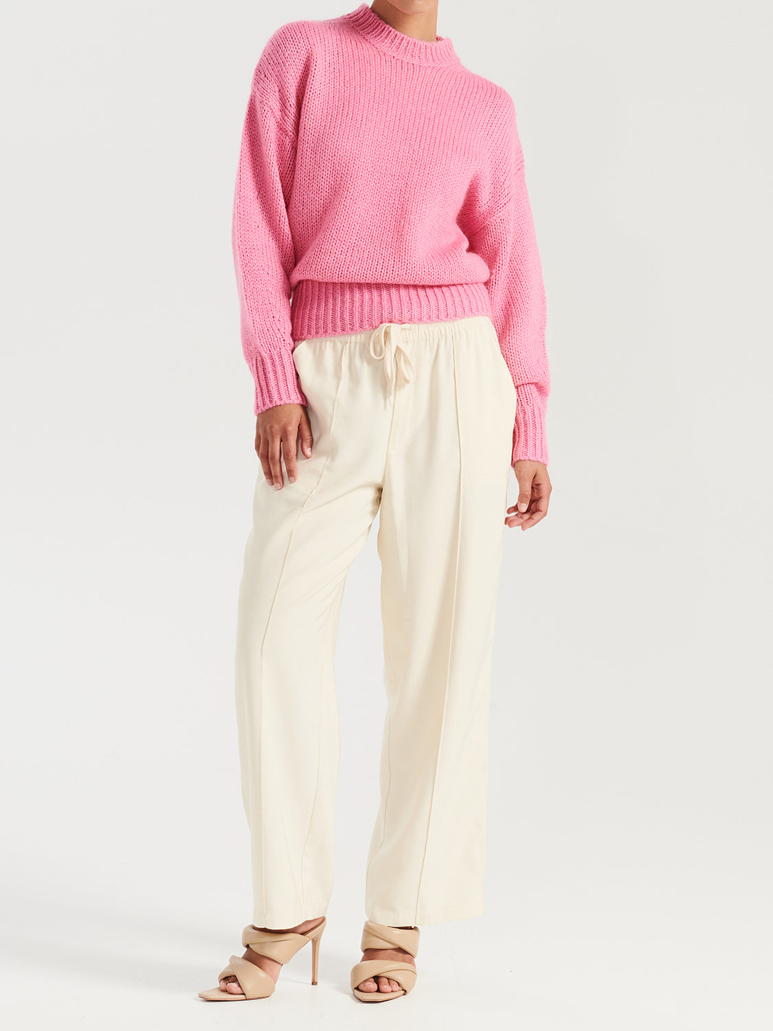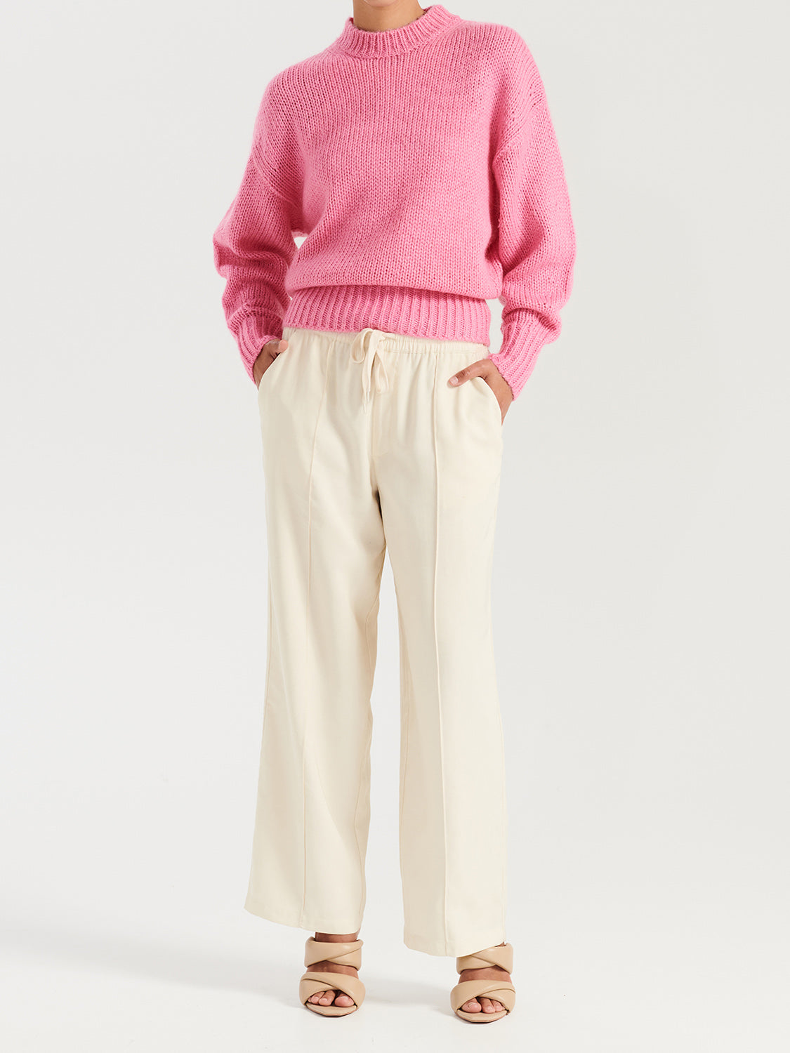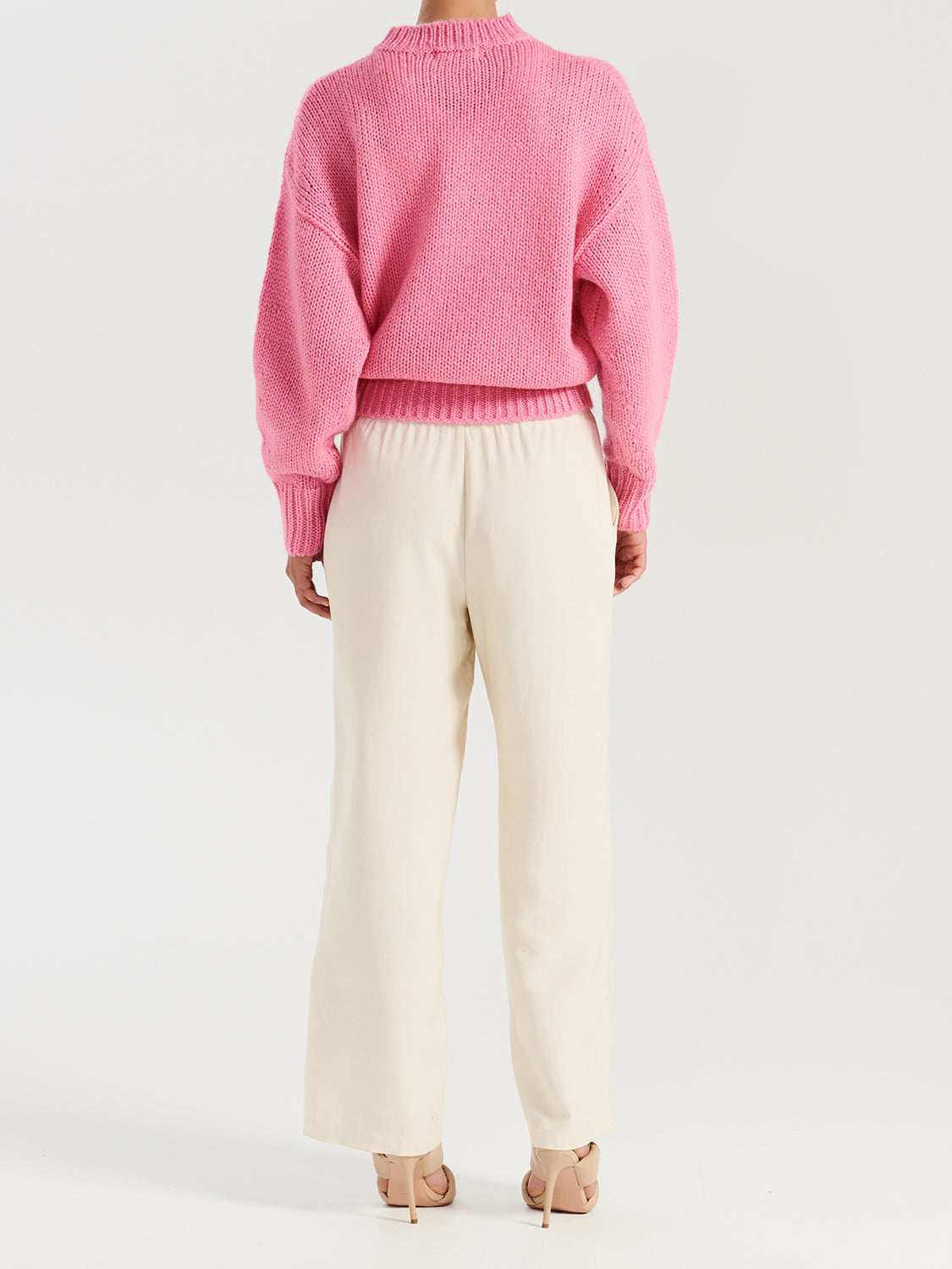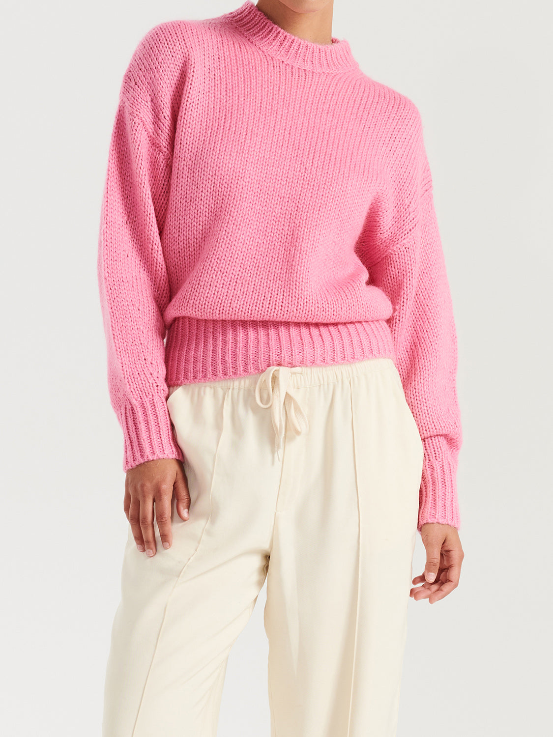 Crafted from a soft and fluffy wool and mohair blend, the Louie Mohair Knit is the perfect winter knit. Designed to be an effortless and classic fit, this style is elevated by the feminine and bright carnation hue. Style back with your faourite leather pants or denim for all day comfort.
