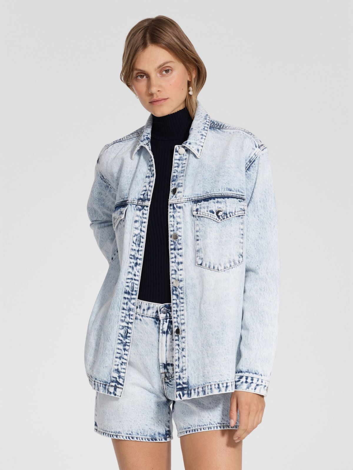 Acid wash is back this season with a revival of the 90's trend. Re-imagined in our signature Archer Shirt Jacket. Wear buttoned up as a shirt jacket with a long sleeve rib underneath or wear as a classic jacket with matching jeans for a bold double denim look.