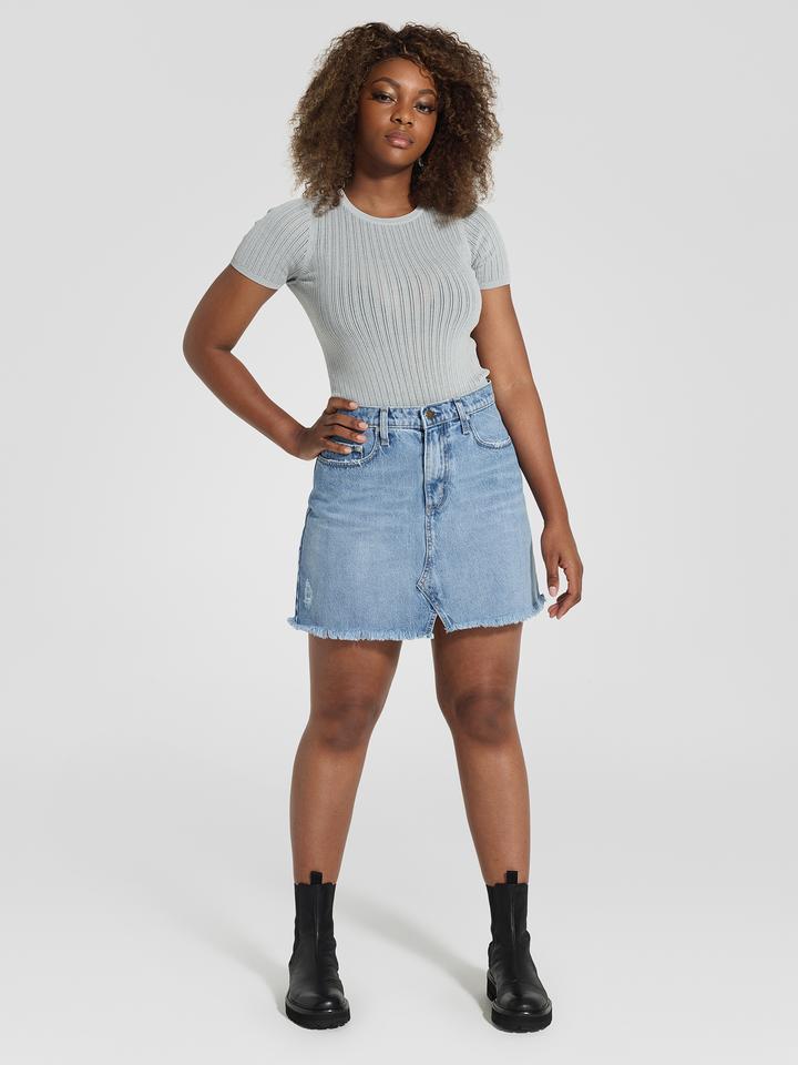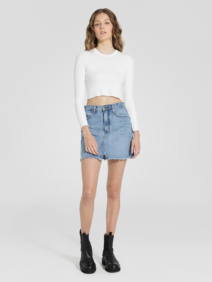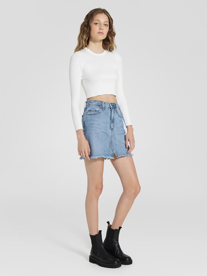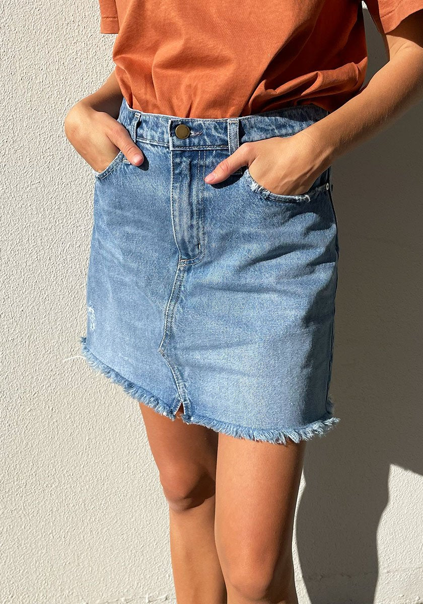 Piper Skirt Strength is a High rise, Slim fit, A-Line design, seamlessly fitting into your wardrobe and ready to be paired with anything from shirting, to classic tees to Luxe Rib apparel. Crafted from Mid Authentic Indigo FibreTrace Rigid Denim, meaning you can trace this garment from seed to store. Revolutionary denim at everyday access.