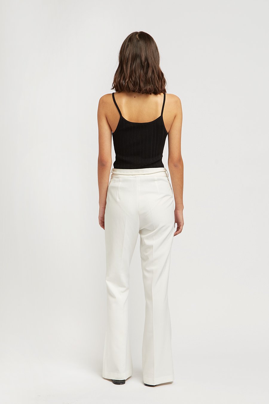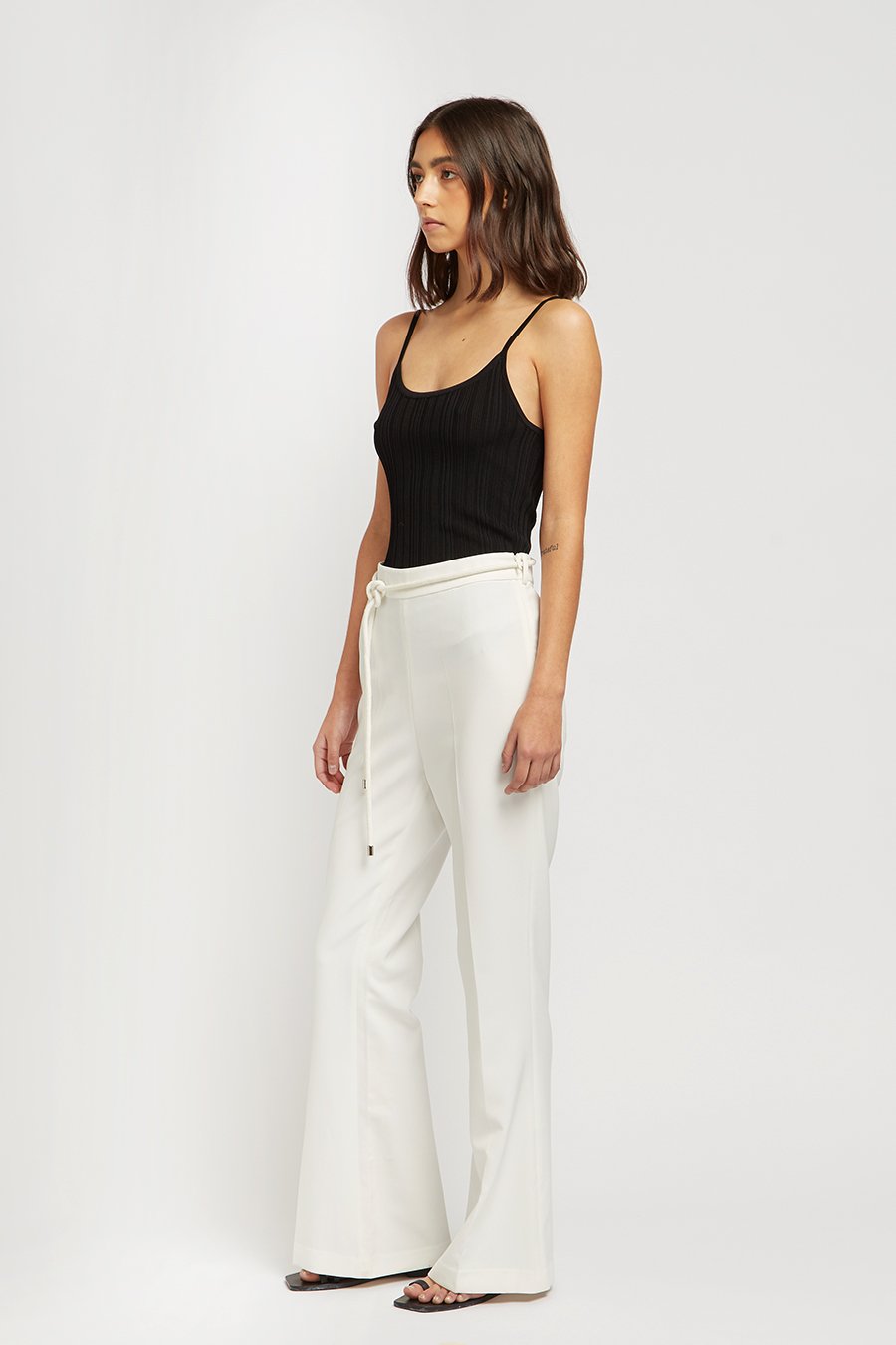 A knitted singlet constructed in an irregular ribbed fabrication. Features a standard length and slim fit.