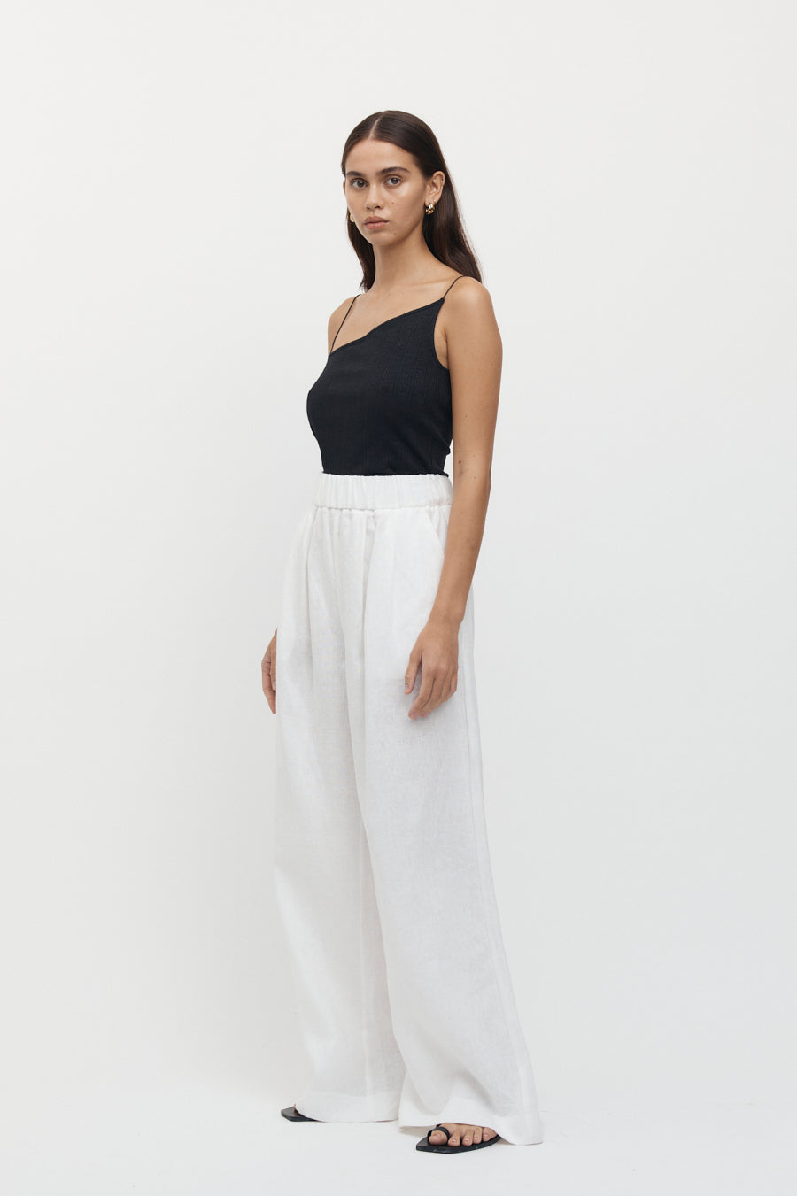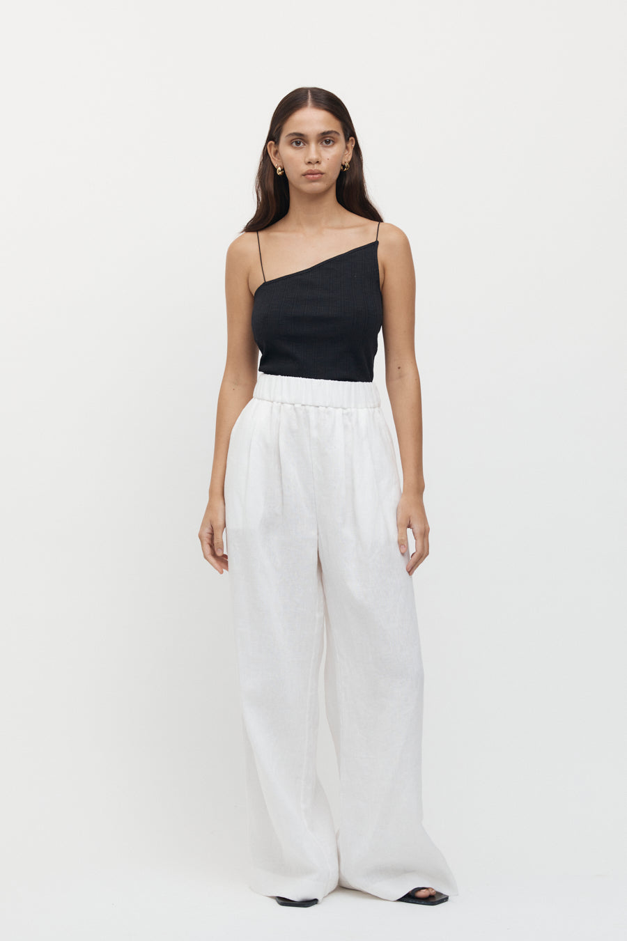 A ribbed cotton singlet, designed in a slim fit. Featuring an asymmetric neck and thin straps.