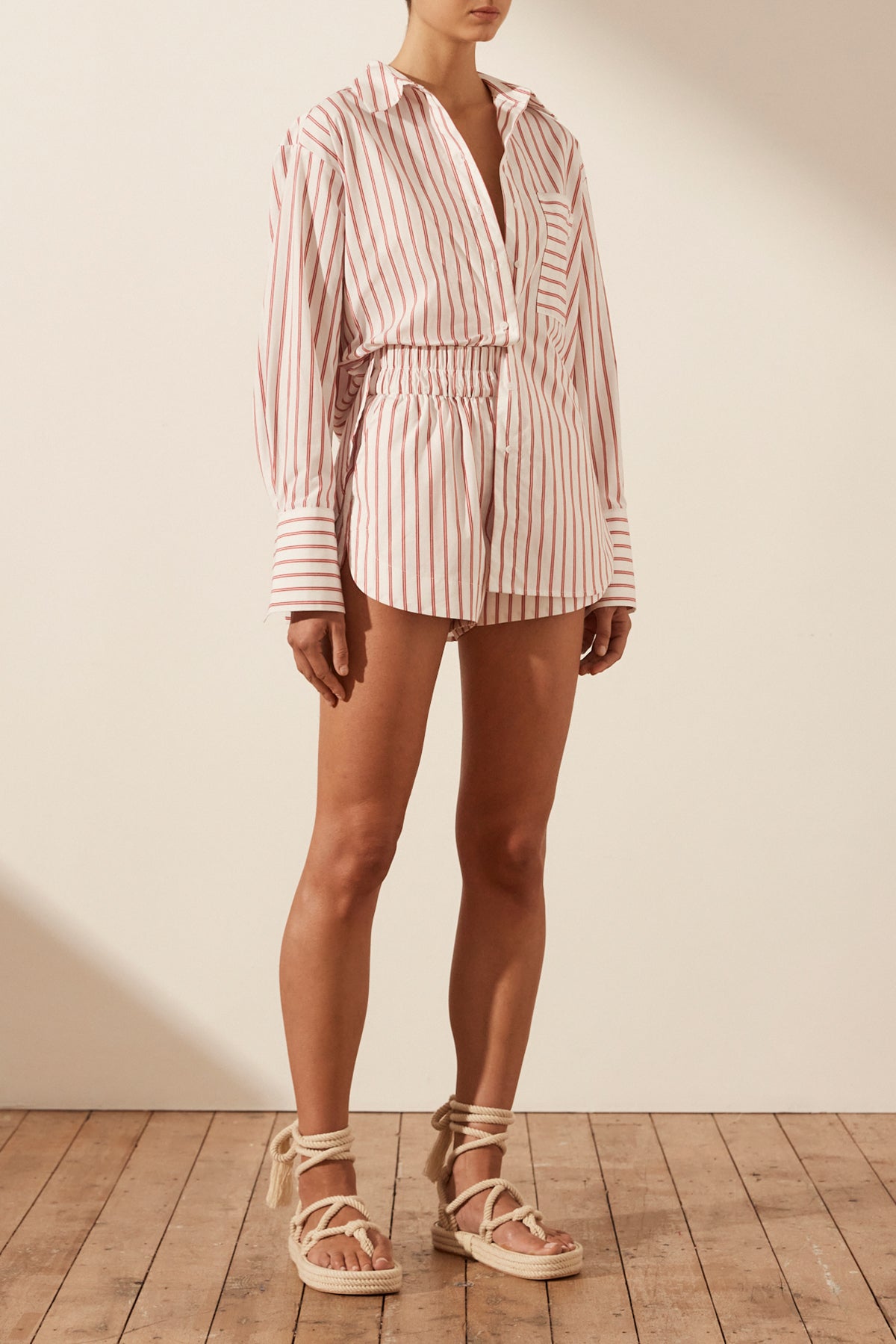 Generously oversized classic shirt in the exclusive Ribiero stripe in a crisp cotton poplin.