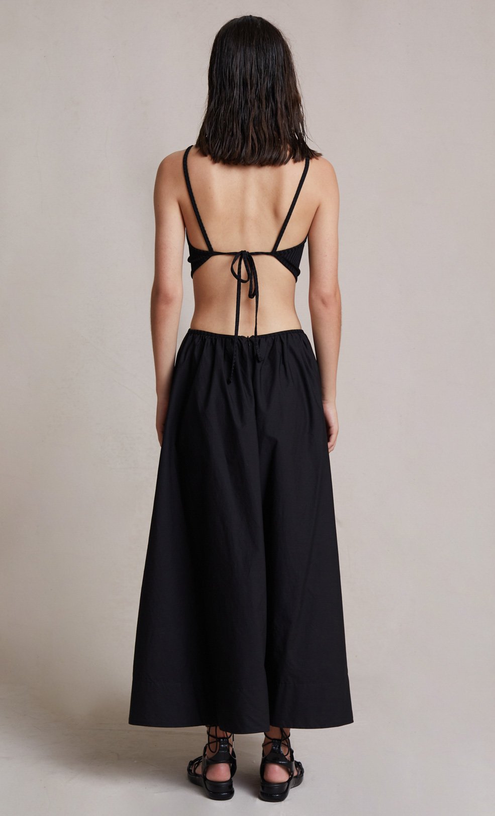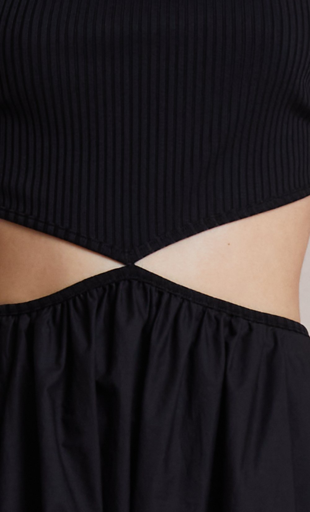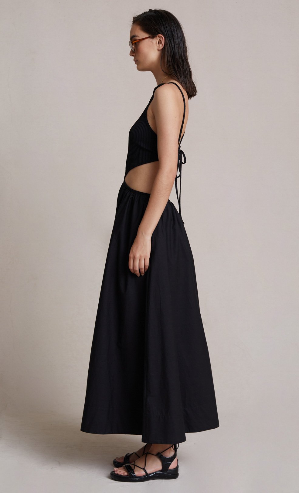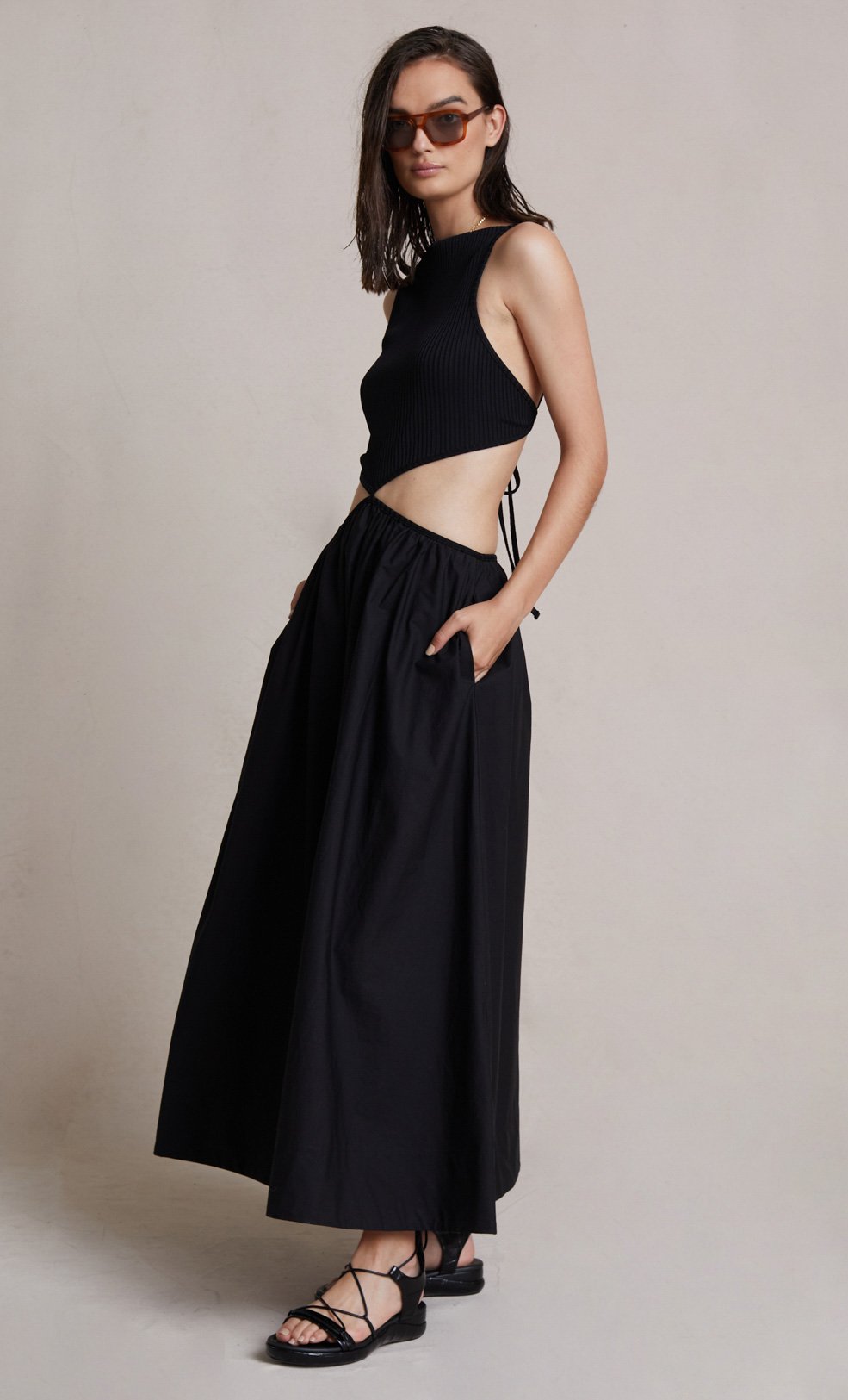 The Bec + Bridge Selene Maxi Dress - Easy to wear cotton cut out midi dress with contrasting stretch rib fabrication through the bodice.