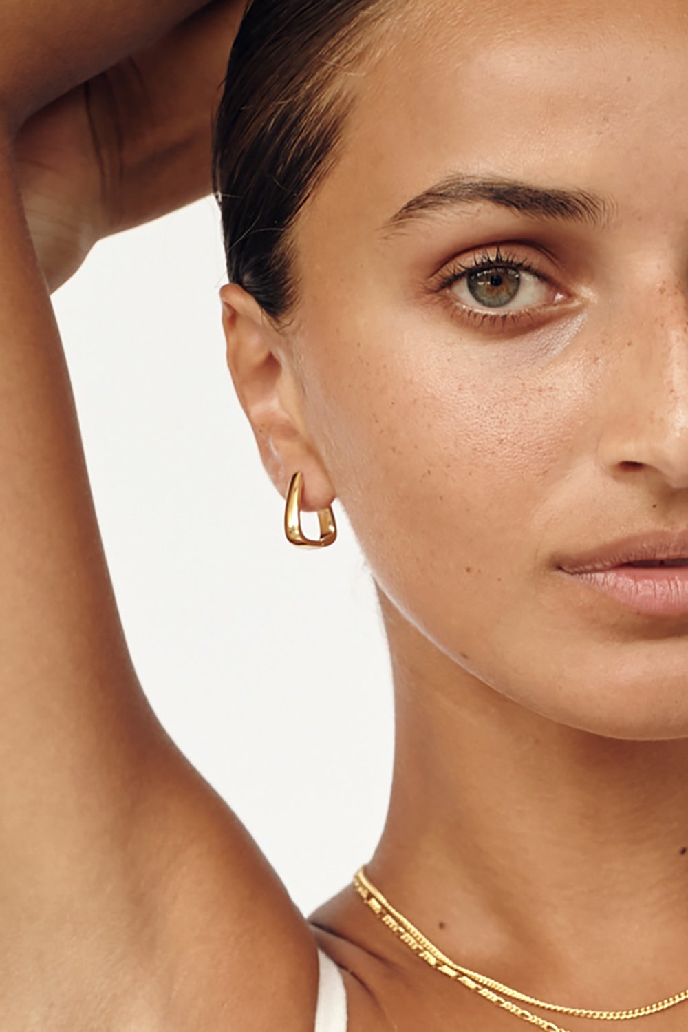 The smooth Uma Drop Sleeper Earrings are an update on our best selling Solid Drop Sleeper Earrings. The earring extends slightly at the top of the ear for a unique and minimalist detail. They are light weight and easy to wear making them the perfect everyday hoop.
