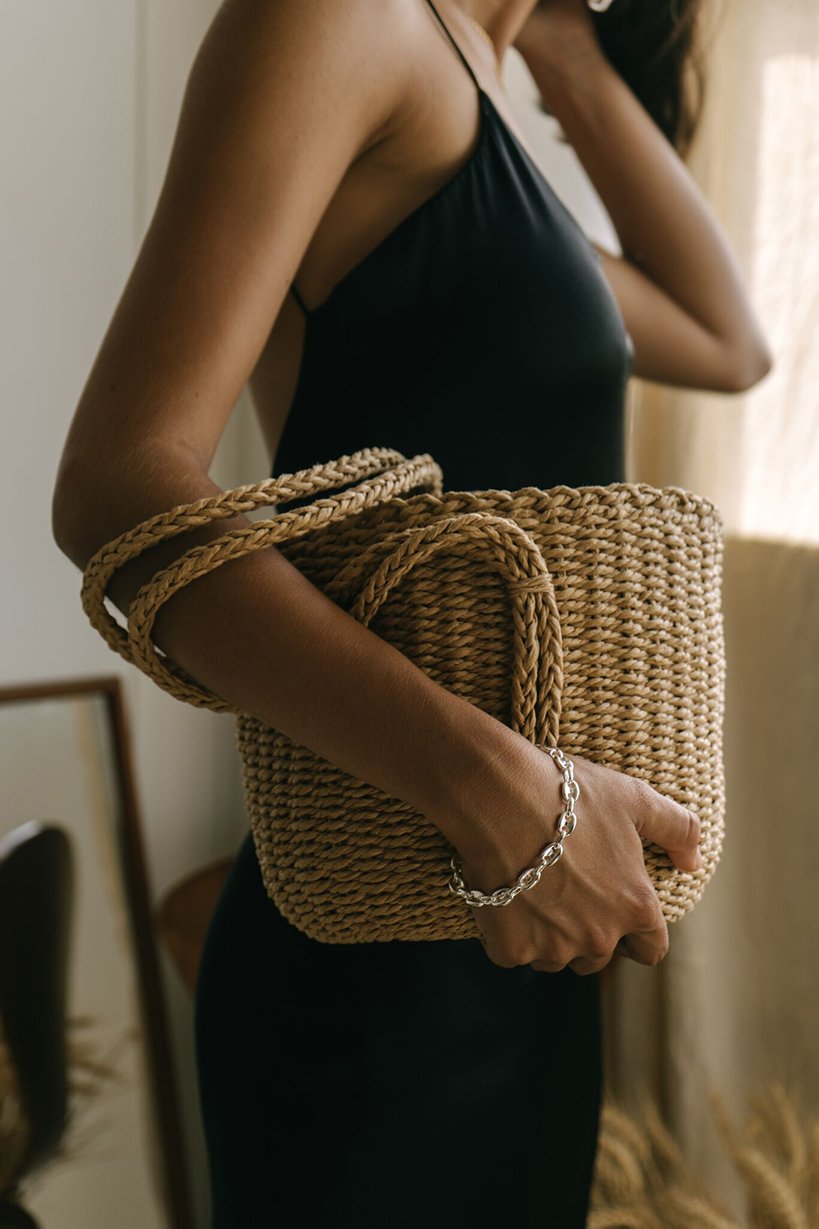 Woven Basket Bag by Brie Leon Organic structure | natural straw material | cotton drill lining with drawstring closure | small internal pocket Bag measures 20x18cm | strap measures 45cm *Please handle with care, this bag is fragile...Read more