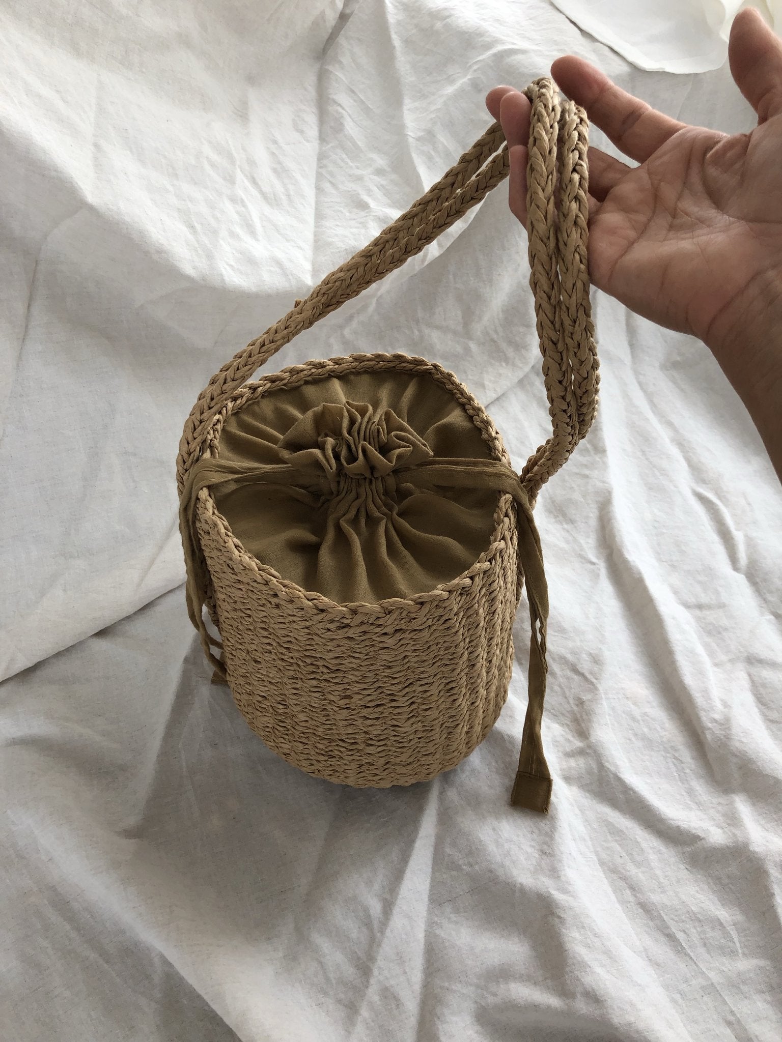 Organic structure | natural straw material | cotton drill lining with drawstring closure | small internal pocket