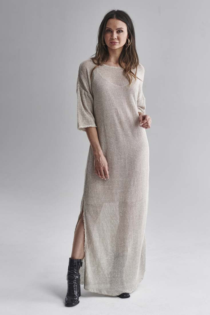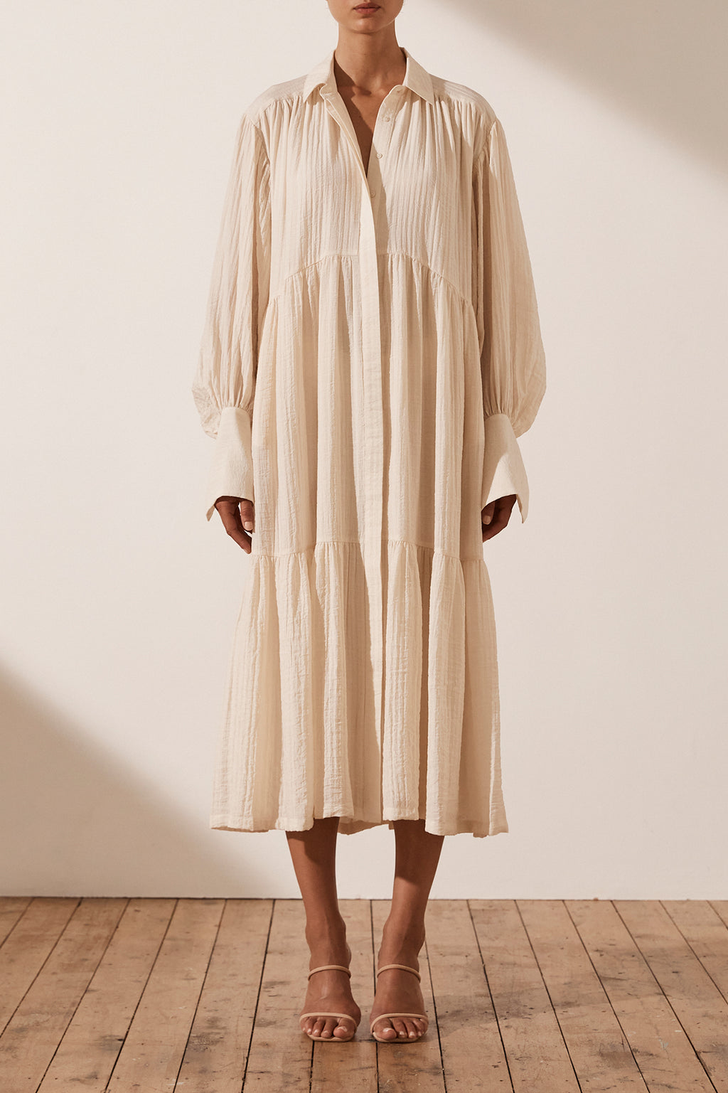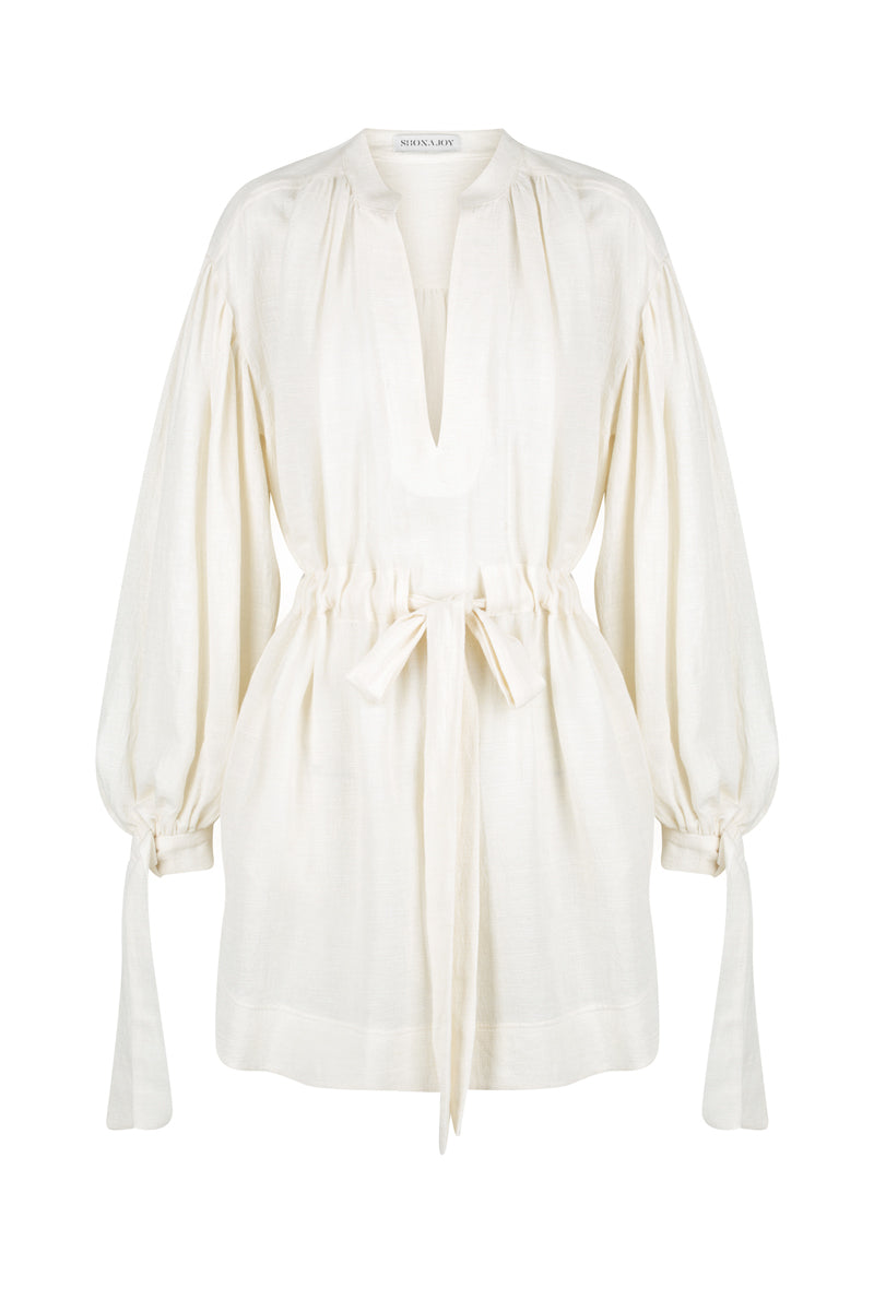 Brigitte Linen Balloon Sleeve Mini Dress in Tofu