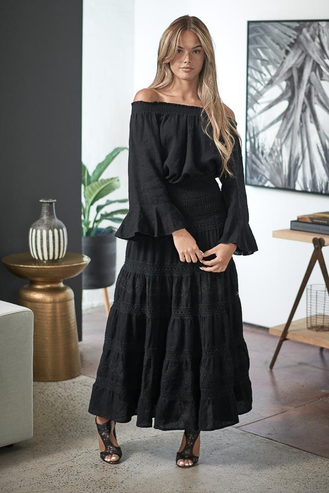 Marlene Open Back Tiered Midi Dress in Chocolate