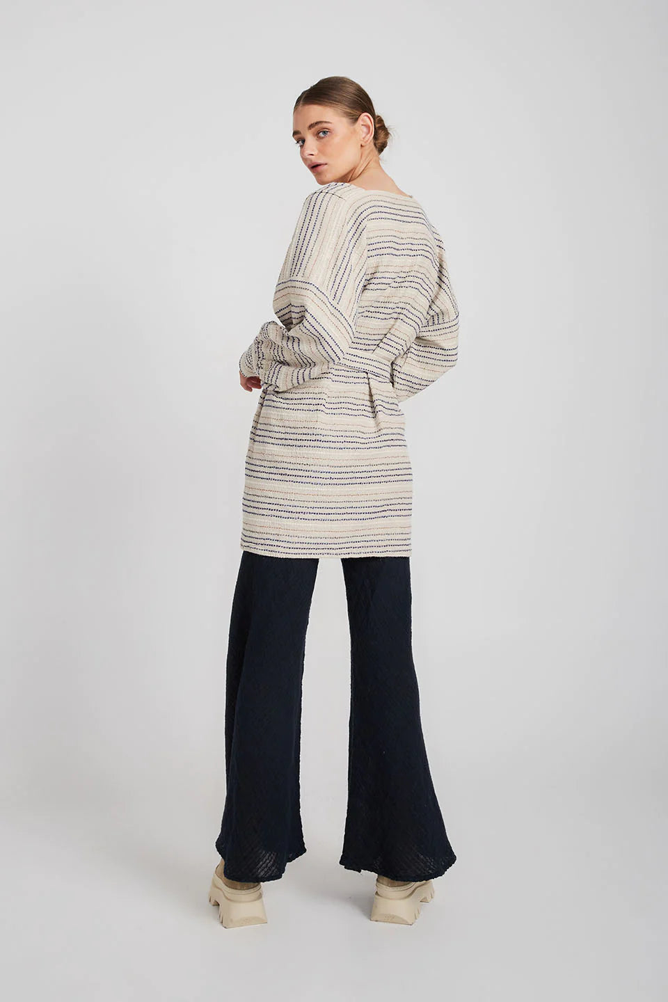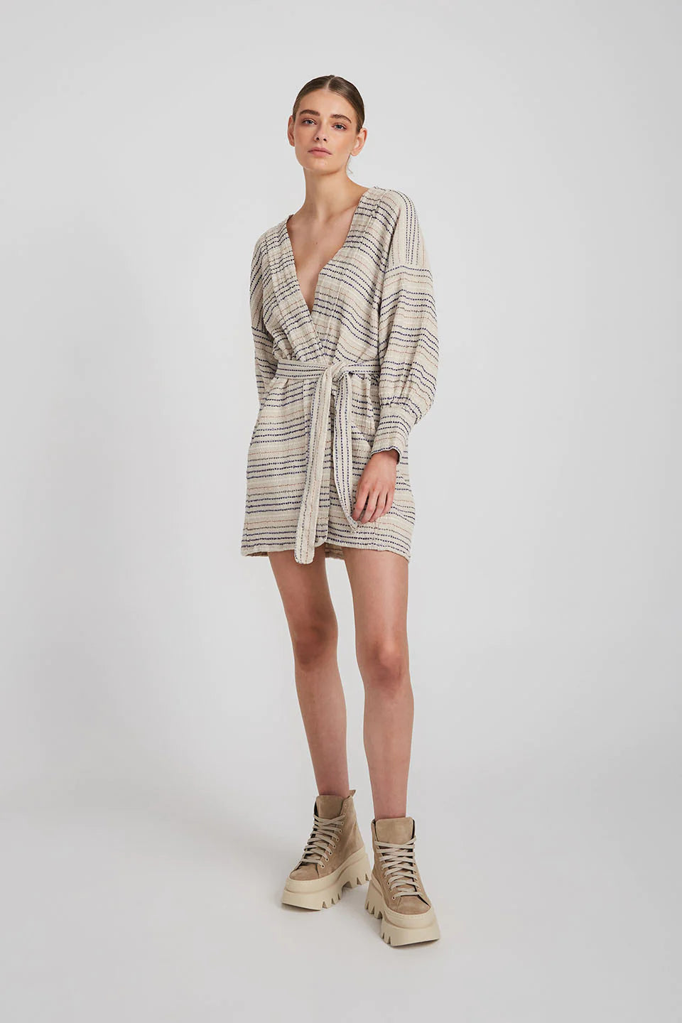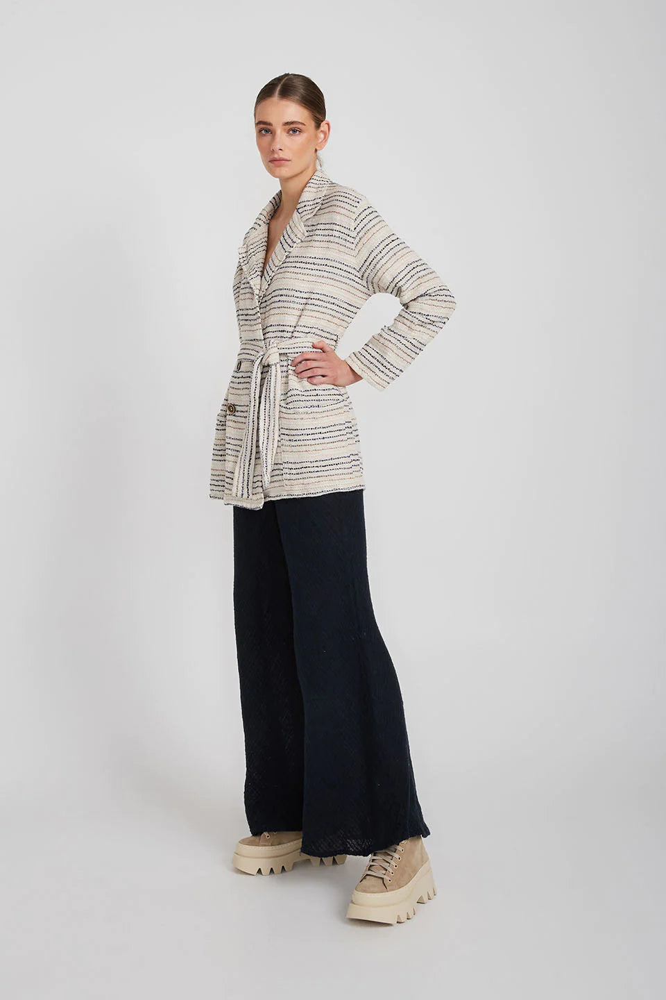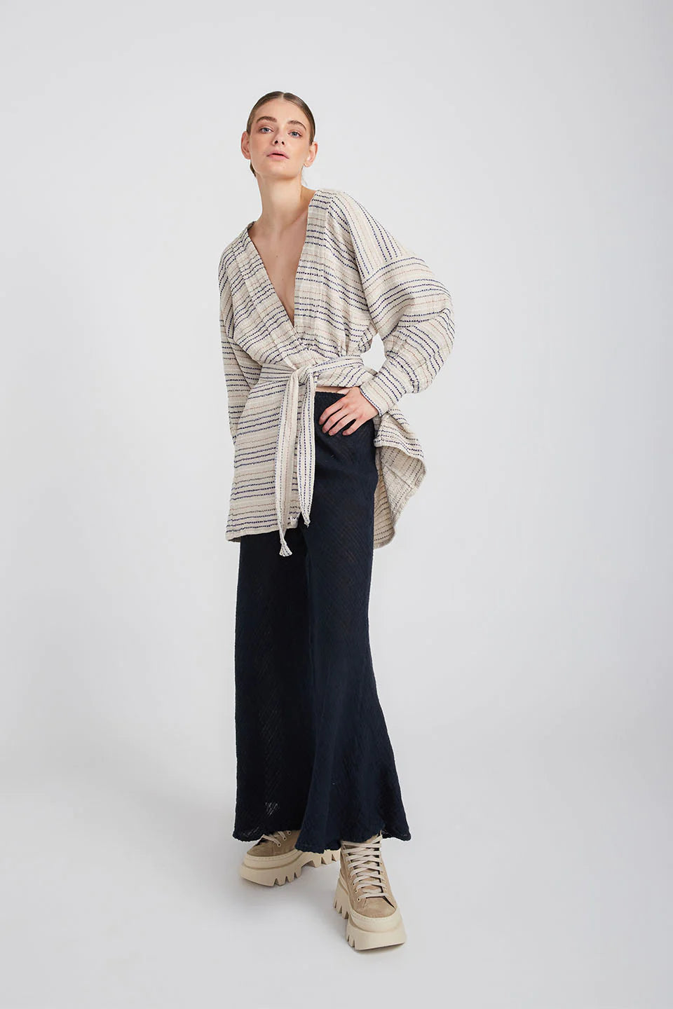 The belted Corfu Dress Coat is cut from linen in a longline silhouette with cuffs that add structure to the loose fit. Wear it as a dress and tie the waist belt to add a little definition and keep the front closed or leave it open and layer yours over everything as a jacket.