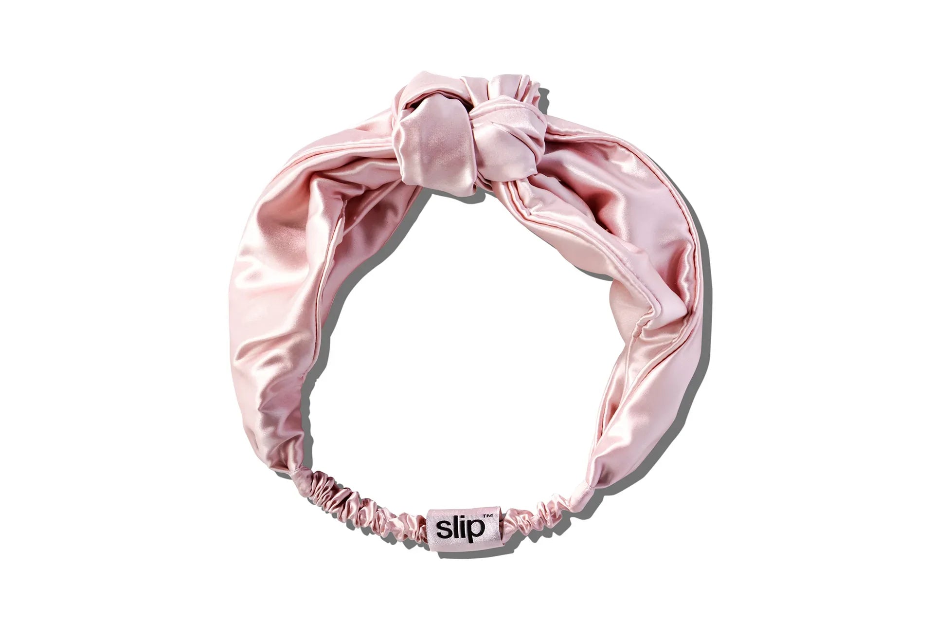 Pink knot headband | One-size | Lightweight front knot design | Made with 100% slipsilk™ | Specially selected elastic with a slipsilk™ covering.