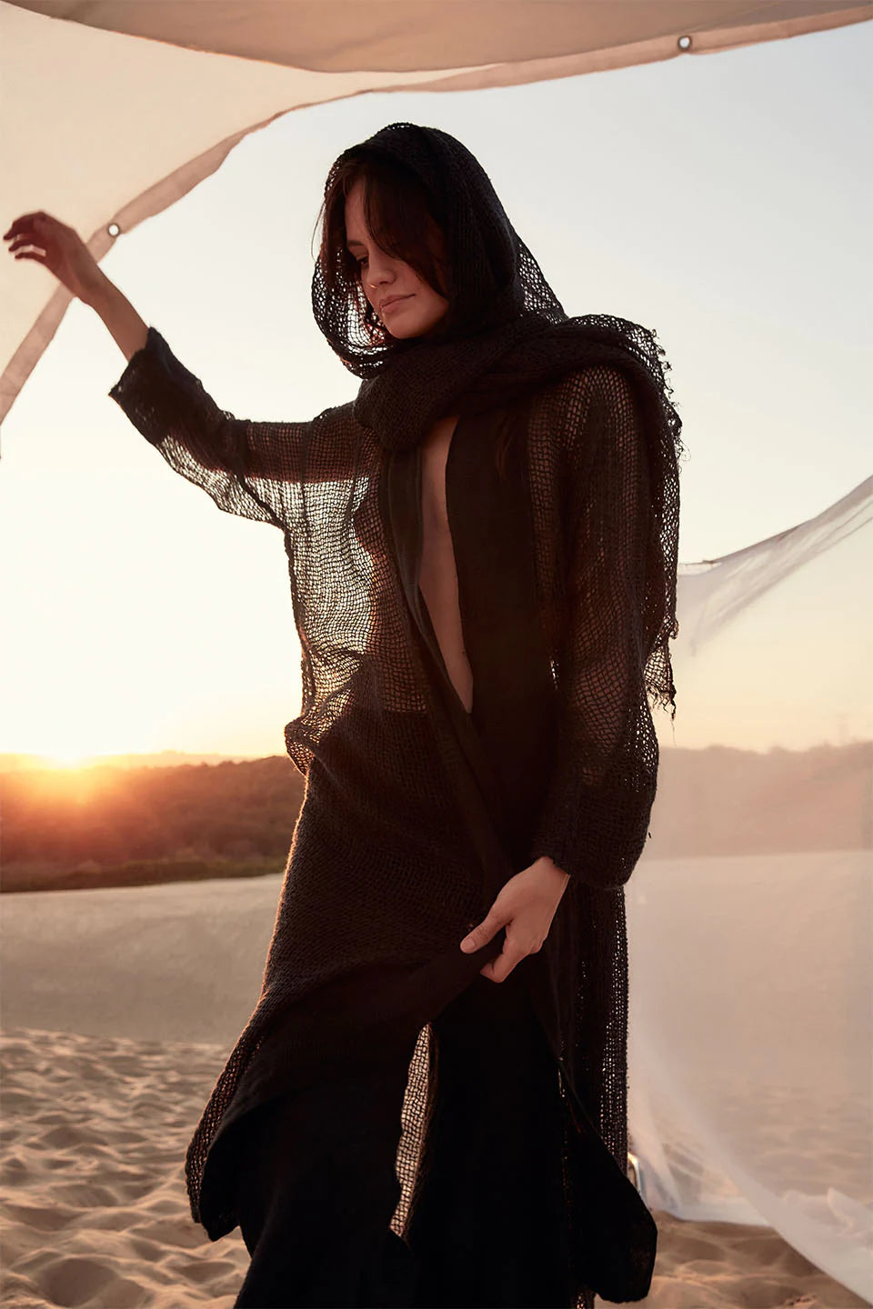 100% Linen, exclusively made in Positano for Estilo Emporio. This duster features a distinct fabric combination of our Pescatore open netted weave and subtle contrast trim on the lapel that is both tonal and highlights the clean lines...Read more