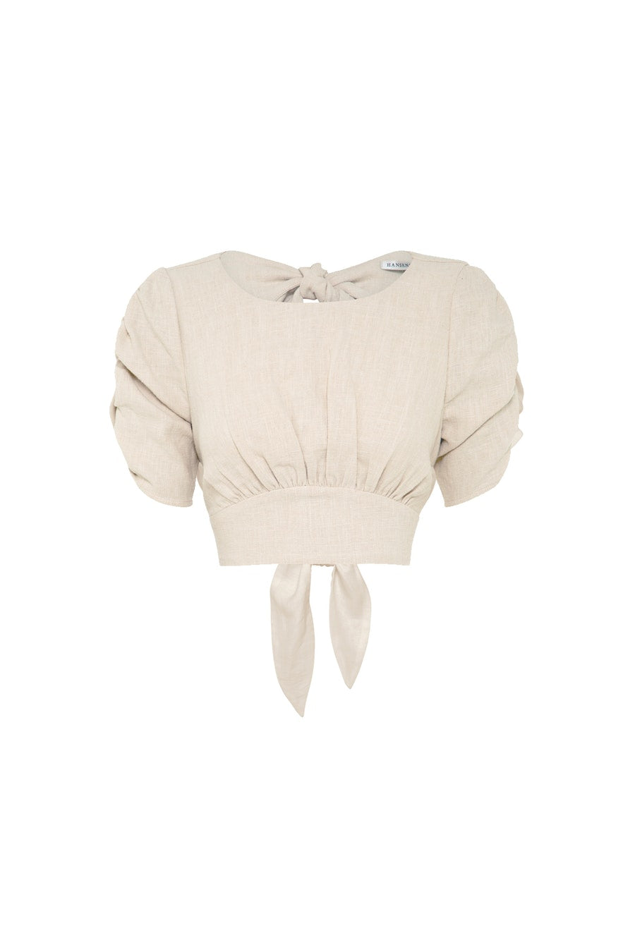 The Hansen & Gretel ‘Maddy Top’ cut in a Natural coloured Ramie. Featuring gathered capped sleeving, a large back opening tying together at the back. Perfectly paired with Mikaela Skirt for a matching linen Spring look. Model is wearing a size Small.