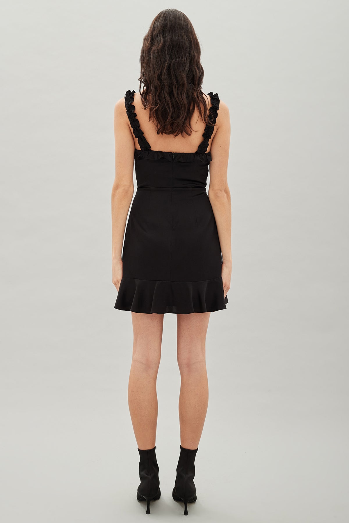 The Saint dress is the perfect day dress. There is ruffle detail across the bust and straps and tie up detail at the neckline. Made from silk satin this dress is non-stretch and mini length. Fitted at the...Read more