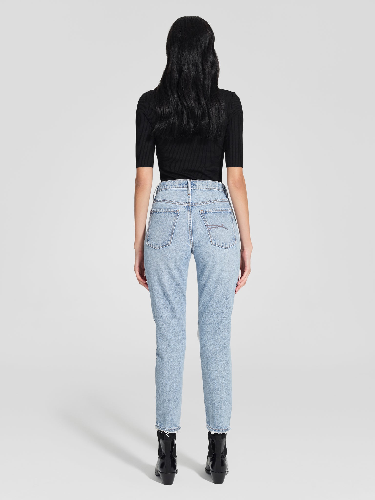 Aptly named after muse Carolyn Bessette Kennedy, the Bessette jean is a high-rise, slim through hip and thigh, slim tapered leg jean, cropped at the ankle allowing the perfect match to a pair of heeled boots.