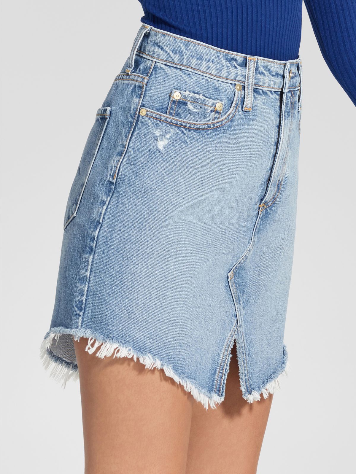The Edge Skirt pays homage to 80's denim. A High-rise, A-line design crafted from light Authentic Indigo rigid denim featuring light distressing and cut out detailing at the hem.Read more