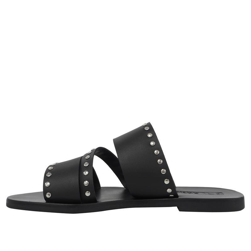 The black Betty Slide features two thick straps with a thin diagonal centre strip bordered with signature Sol Sana edgy silver studs. The classic rounded toe shape will make this your go-to slide when you need to elevate your everyday.