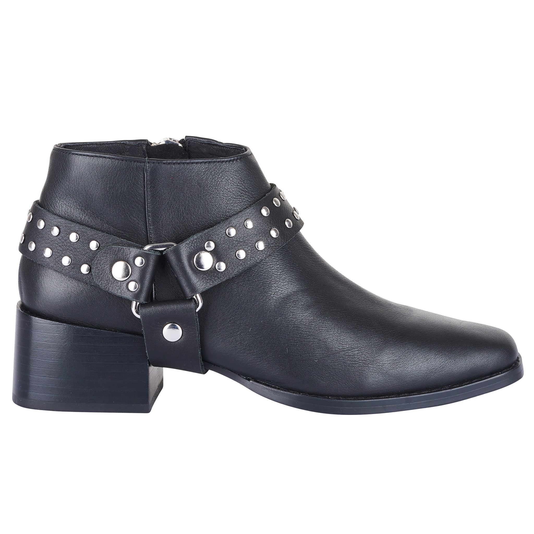 The traditional black ankle boot gets an edgy update with a silver studded removable harness. The slightly elongated round toe and chunky Chelsea heel makes this flattering shape a winter essential. Heel height: 5cm 100% leather upper 100%...Read more