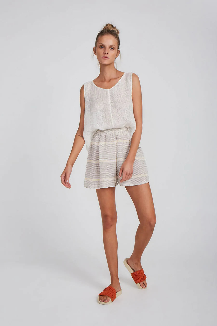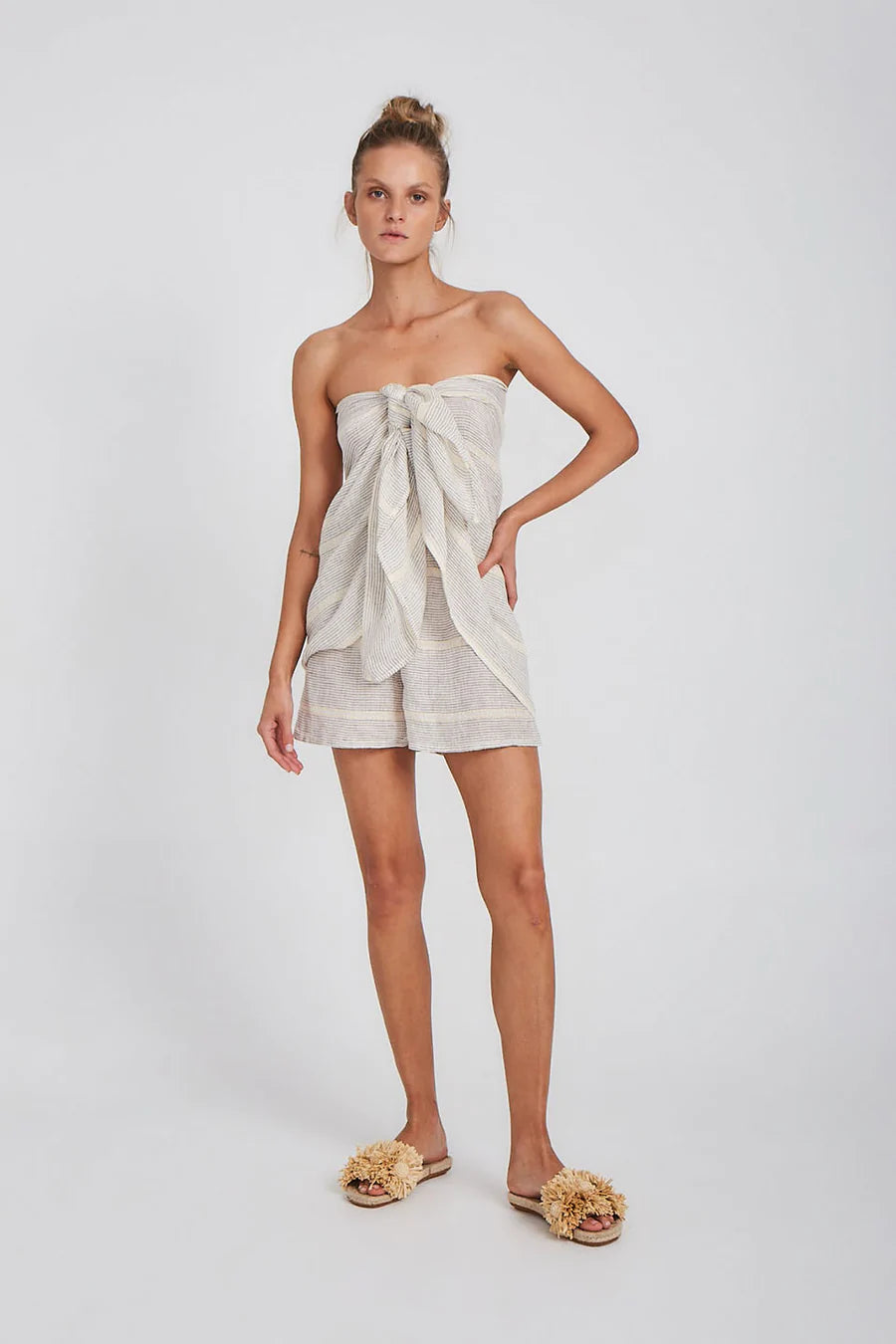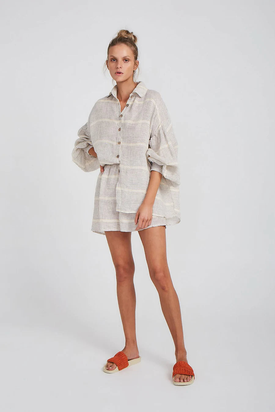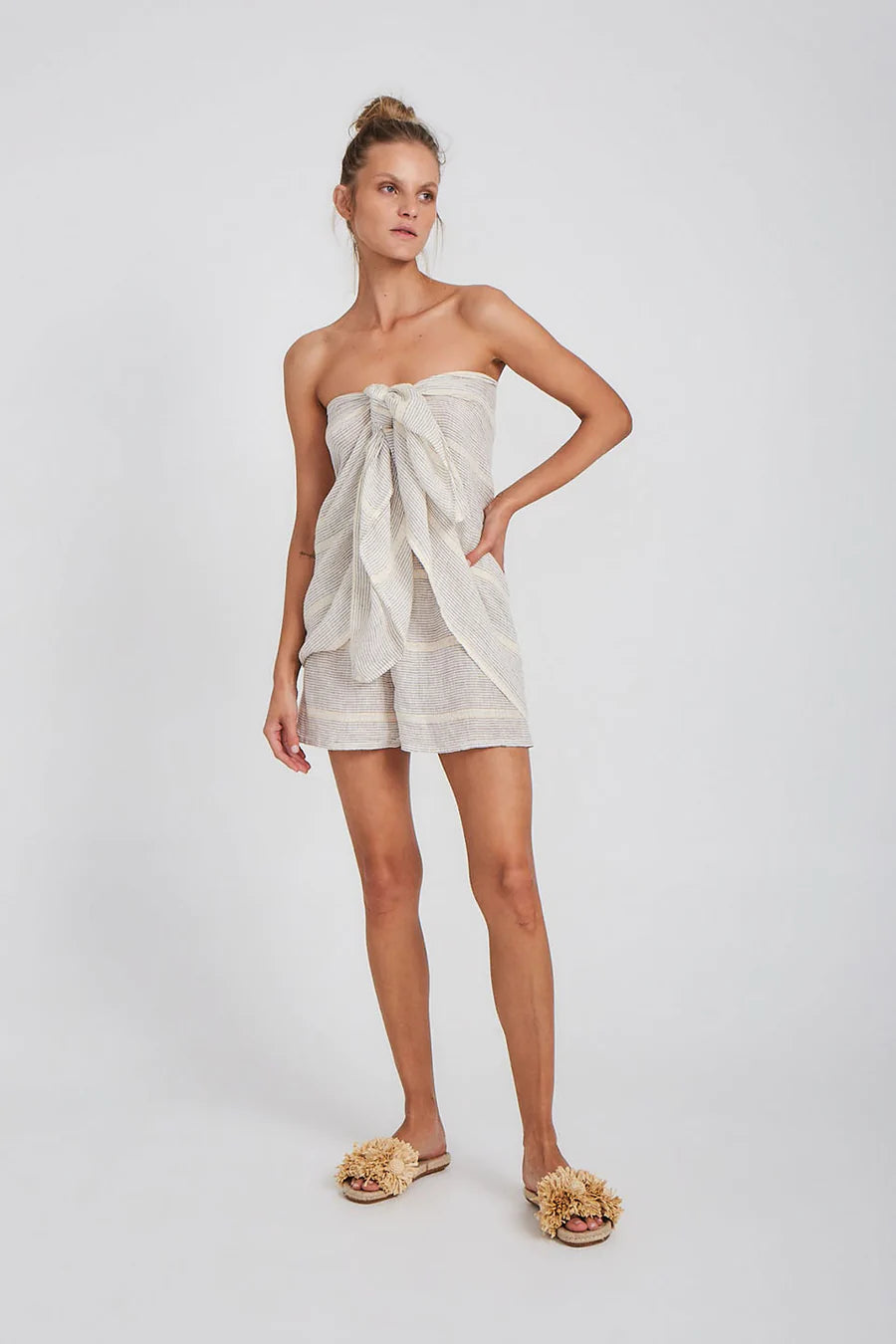 The Samba Shorts are the essential Summer companion. An easy pull-on style with a flattering cut and elasticised waist. Pair with our matching Zimi Shirt for an elevated lounge look, or our Alai Maxi Duster Coat to slip on into the evening.