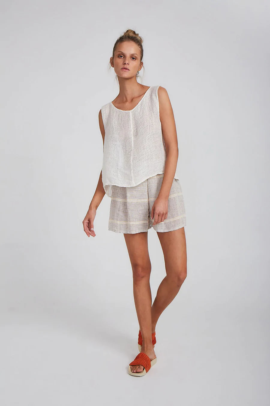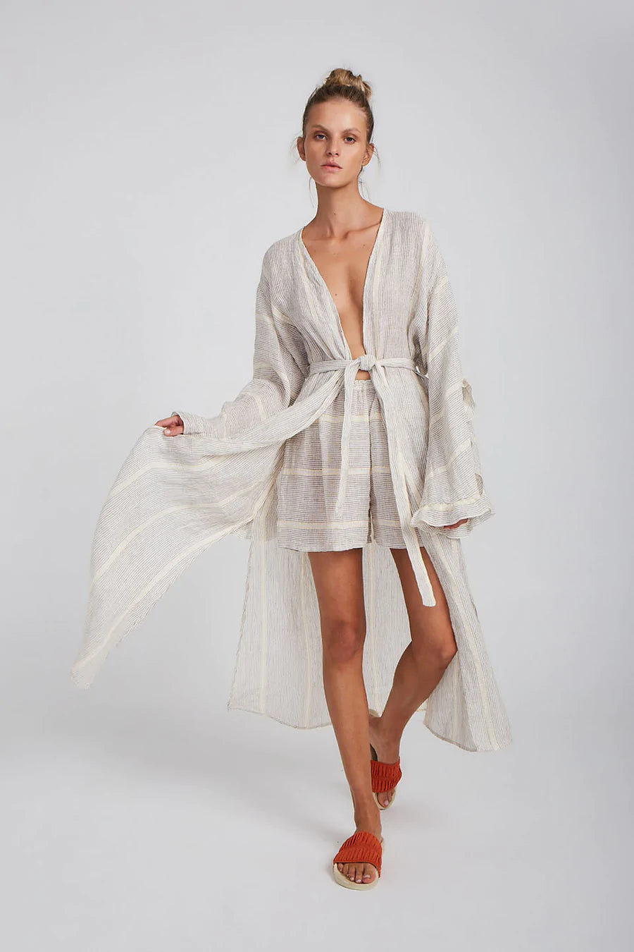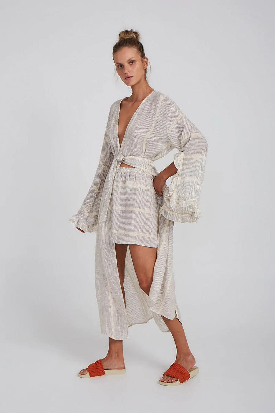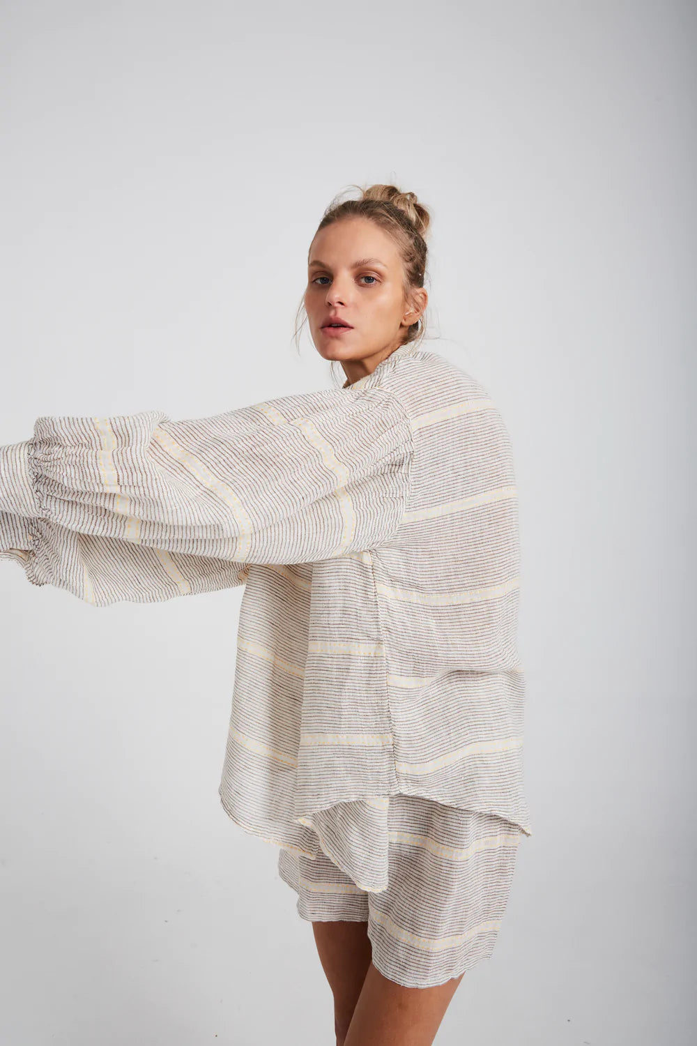 The Samba Shorts are the essential Summer companion. An easy pull-on style with a flattering cut and elasticised waist. Pair with our matching Zimi Shirt for an elevated lounge look, or our Alai Maxi Duster Coat to slip on into the evening.