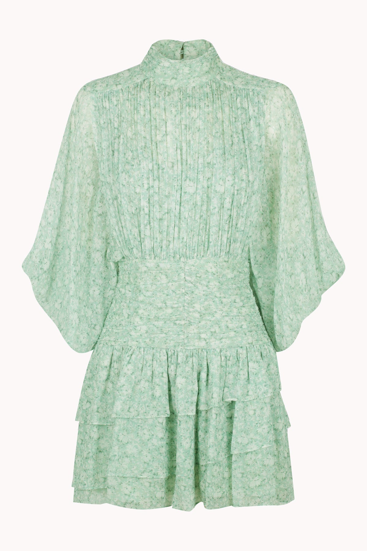 Long sleeve mini dress in a light weight semi-sheer chiffon in the exclusive Aurore print.