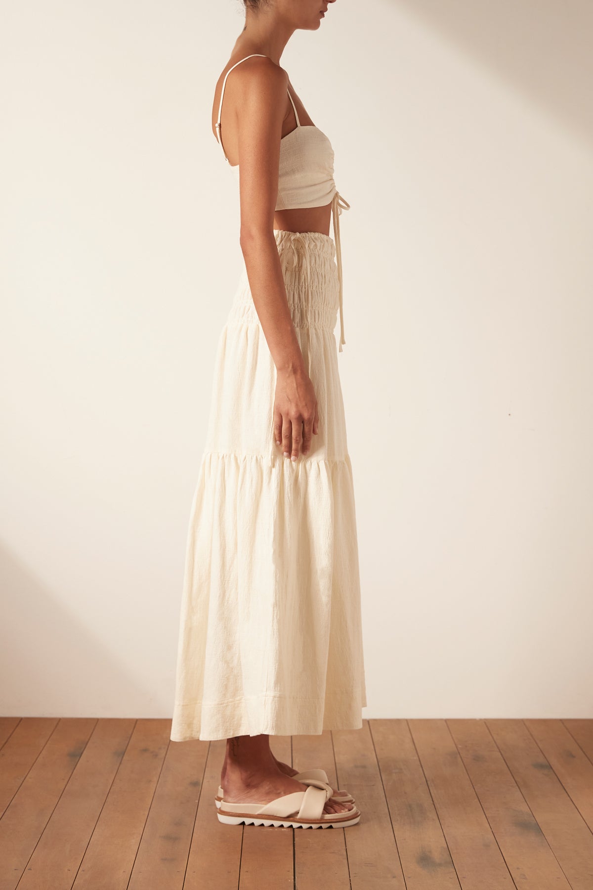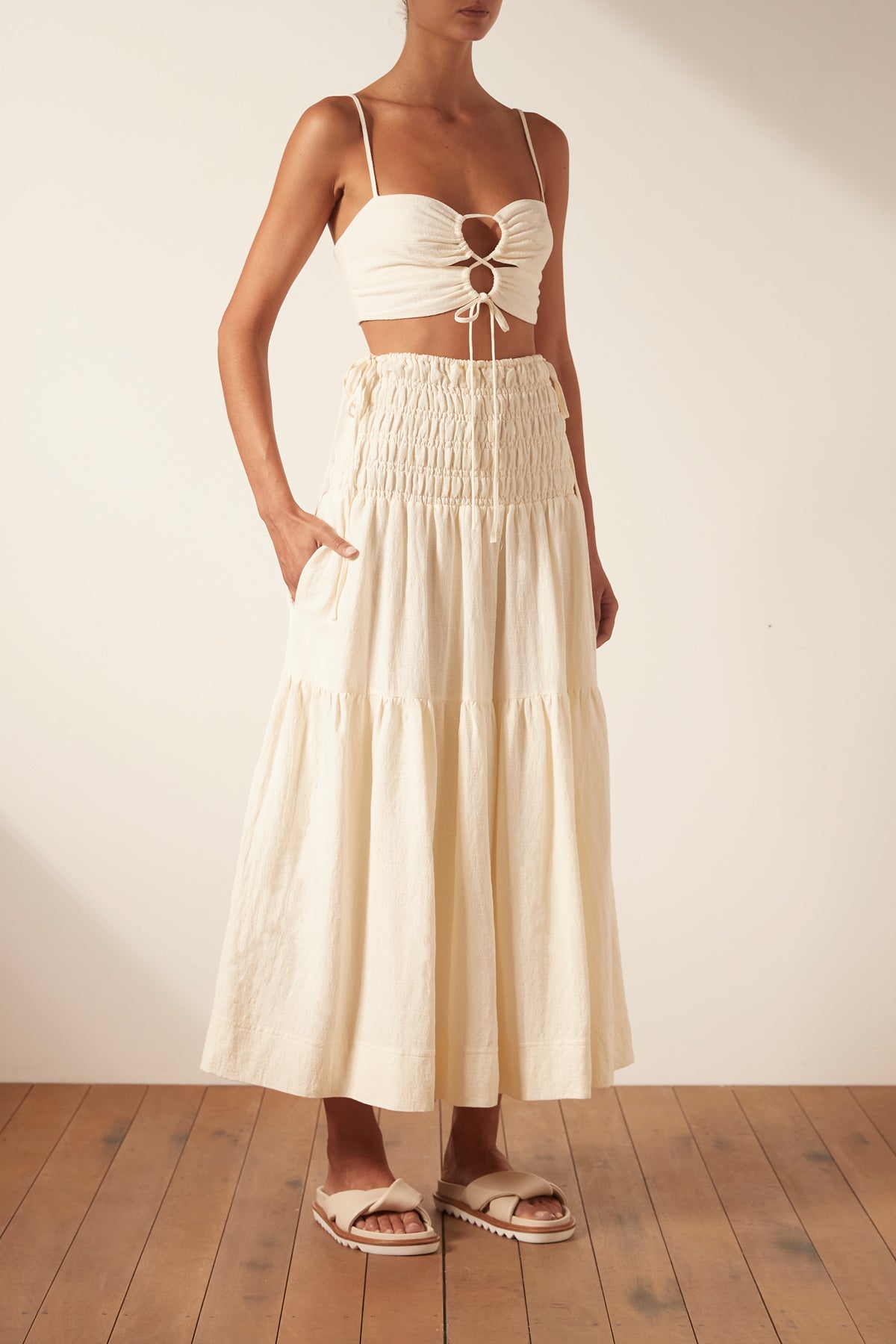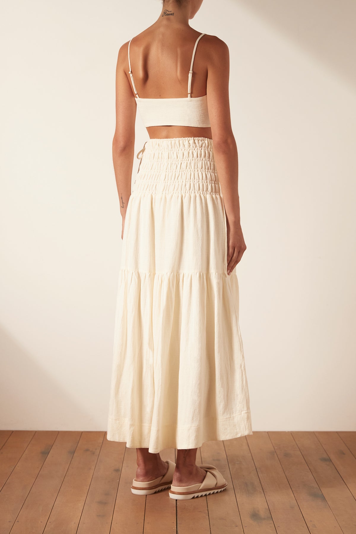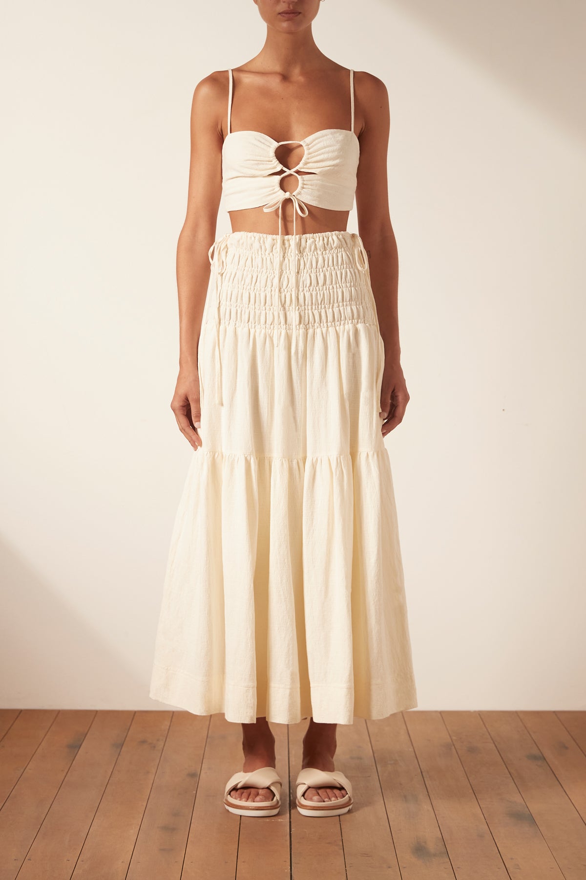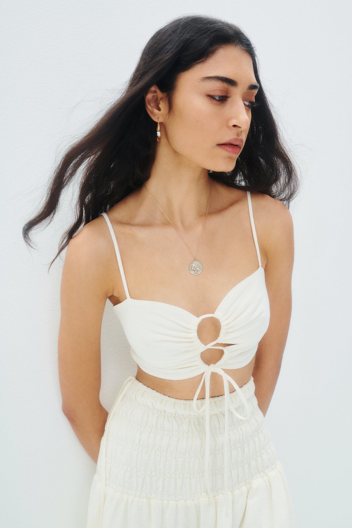 Lace up bralette in a textured linen blend Premium linen blend fabric Adjustable rouleau straps Fitted bodice with lace up front Medium weight, non-stretchy woven 65% Cotton 35% Linen Designed in Australia Made in China Our studio model...Read more