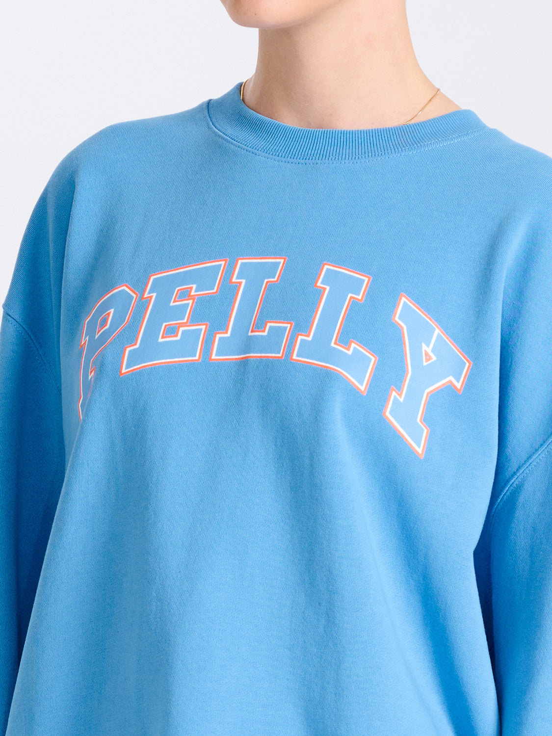 Description: The Collegiate Pelly Sweater is made from our 100% cotton blend French Terry fabrication, making it the perfect transeasonal sweat. Featuring our latest sports luxe graphic, this style was designed for an oversized fit and features a plastisol branded sports style print.