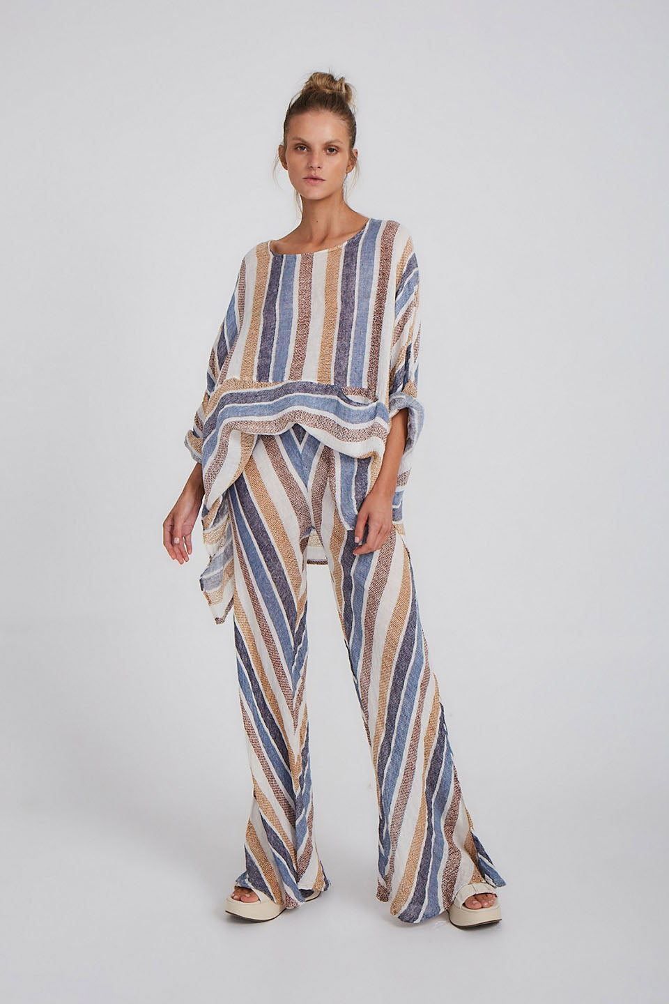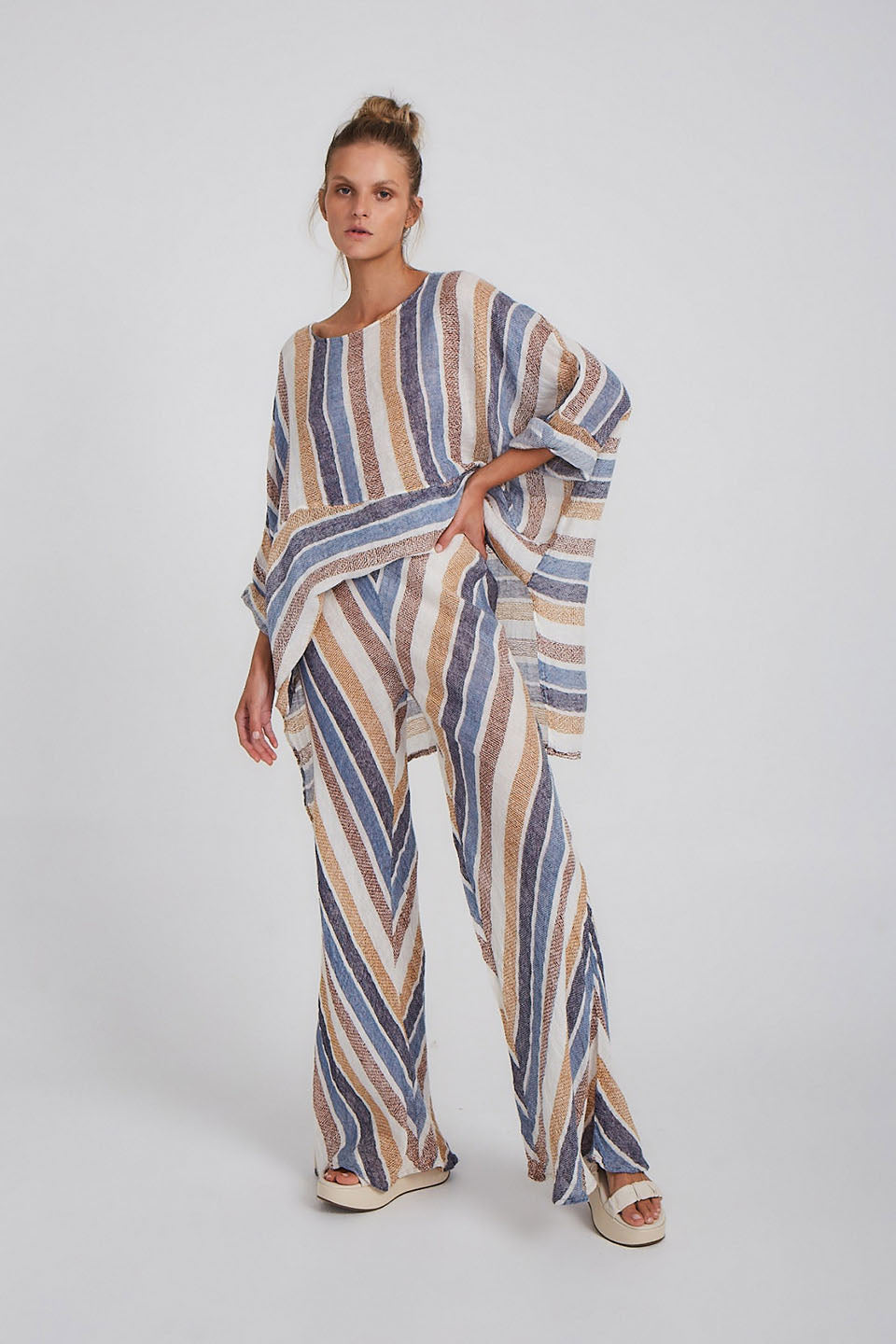 100% Linen, exclusively made in Positano for Estilo Emporio. This classic Estilo Emporio has been updated with a fresh new stripe. A beautiful oversized silhouette, with a scoop neckline and loose 3/4 sleeves. The Nerano Top is cut on...Read more