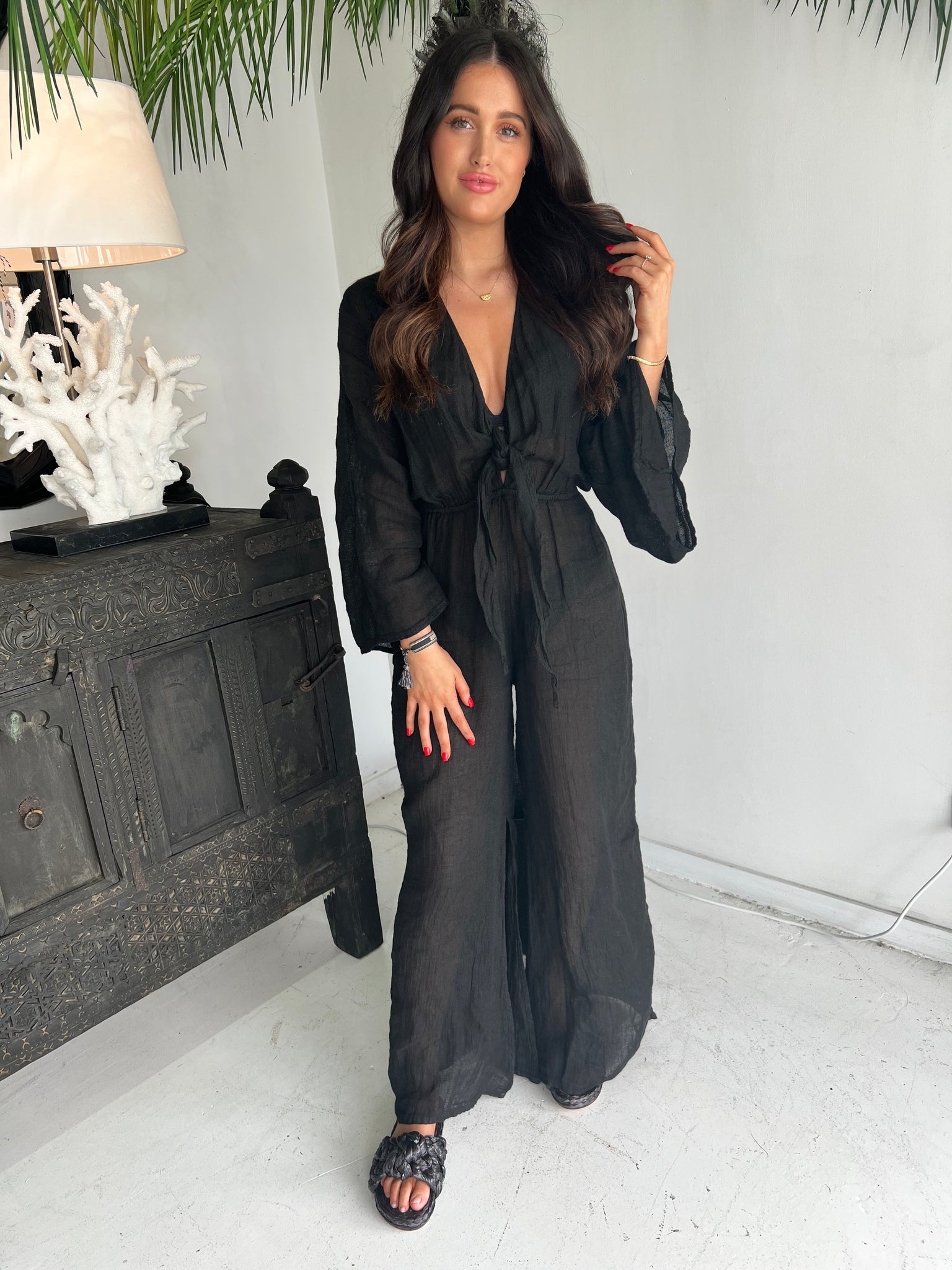 The Tulsa jumpsuit is available in two exclusive Bungalow colours - Casablanca & Black.