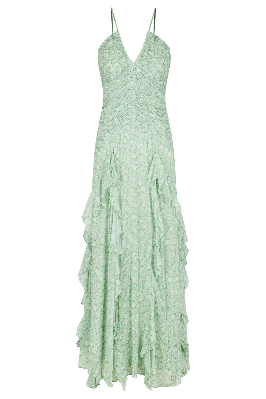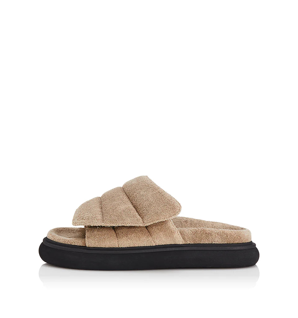 BRIGITTE SHIRRED TIERED MIDI DRESS - ALMOND