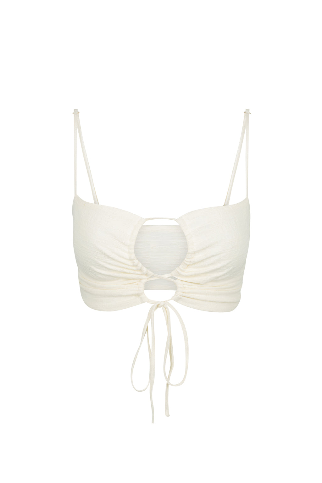 BRIGITTE LACE UP BRALETTE - TOFU - $60.00