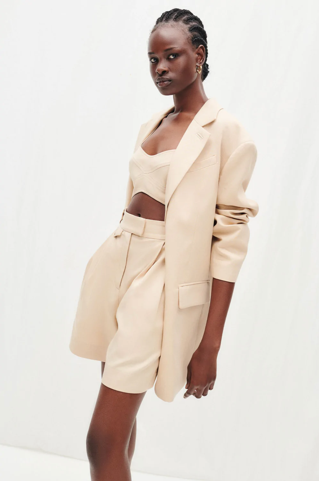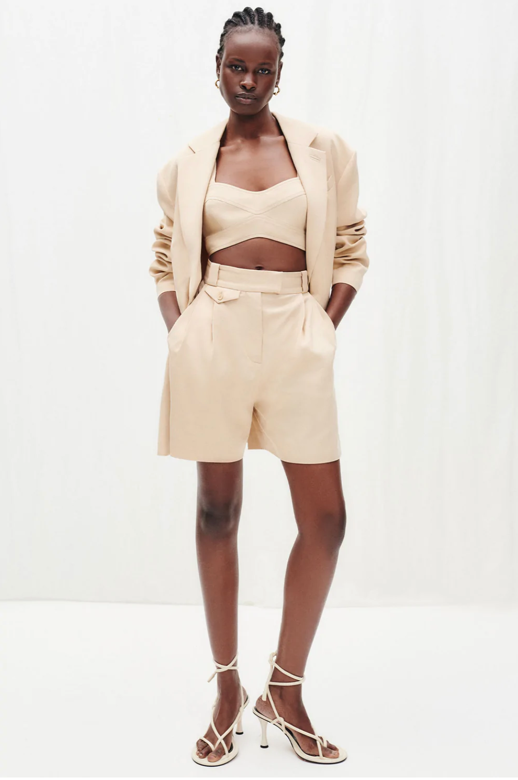 High waisted waistband Wide belt loops Coin pocket Fly front closure with button Side and back pockets Front knife pleat Wide leg Medium weight, non-stretchy woven 66% TENCEL™ LYOCELL 34% Cotton Read more