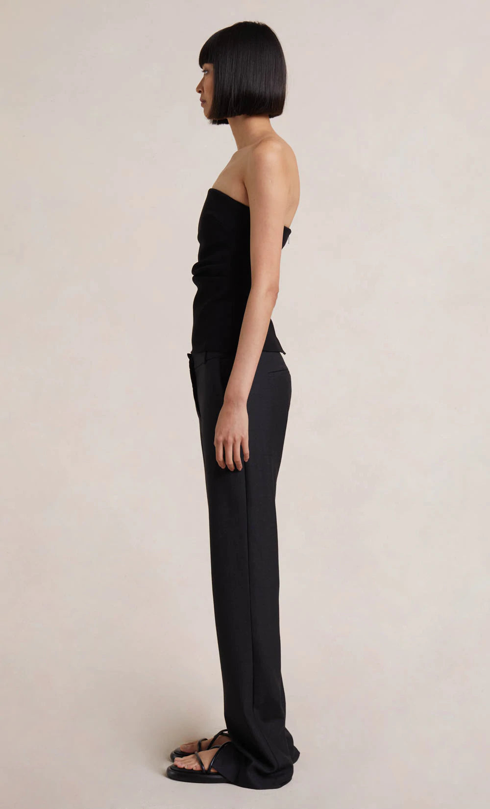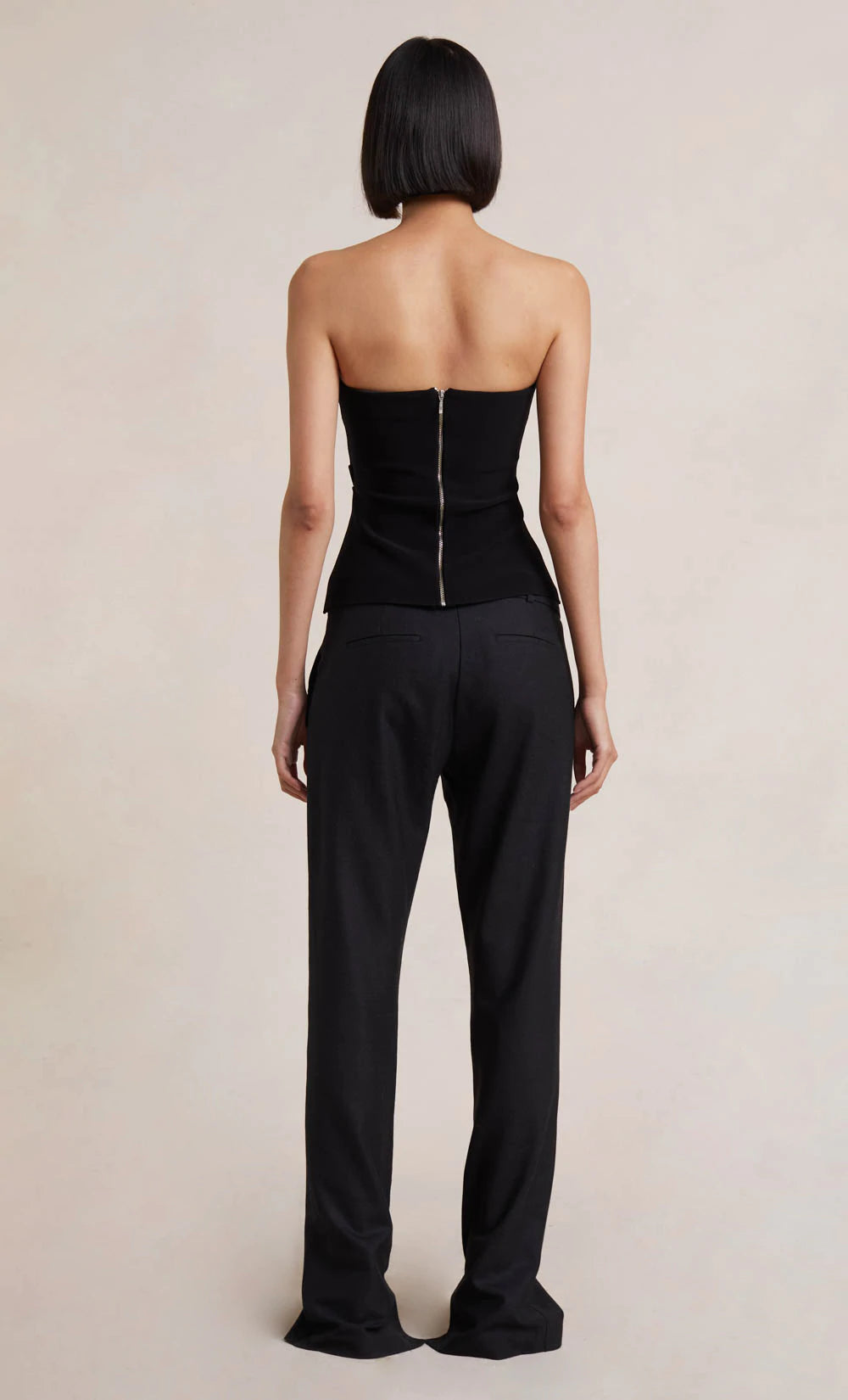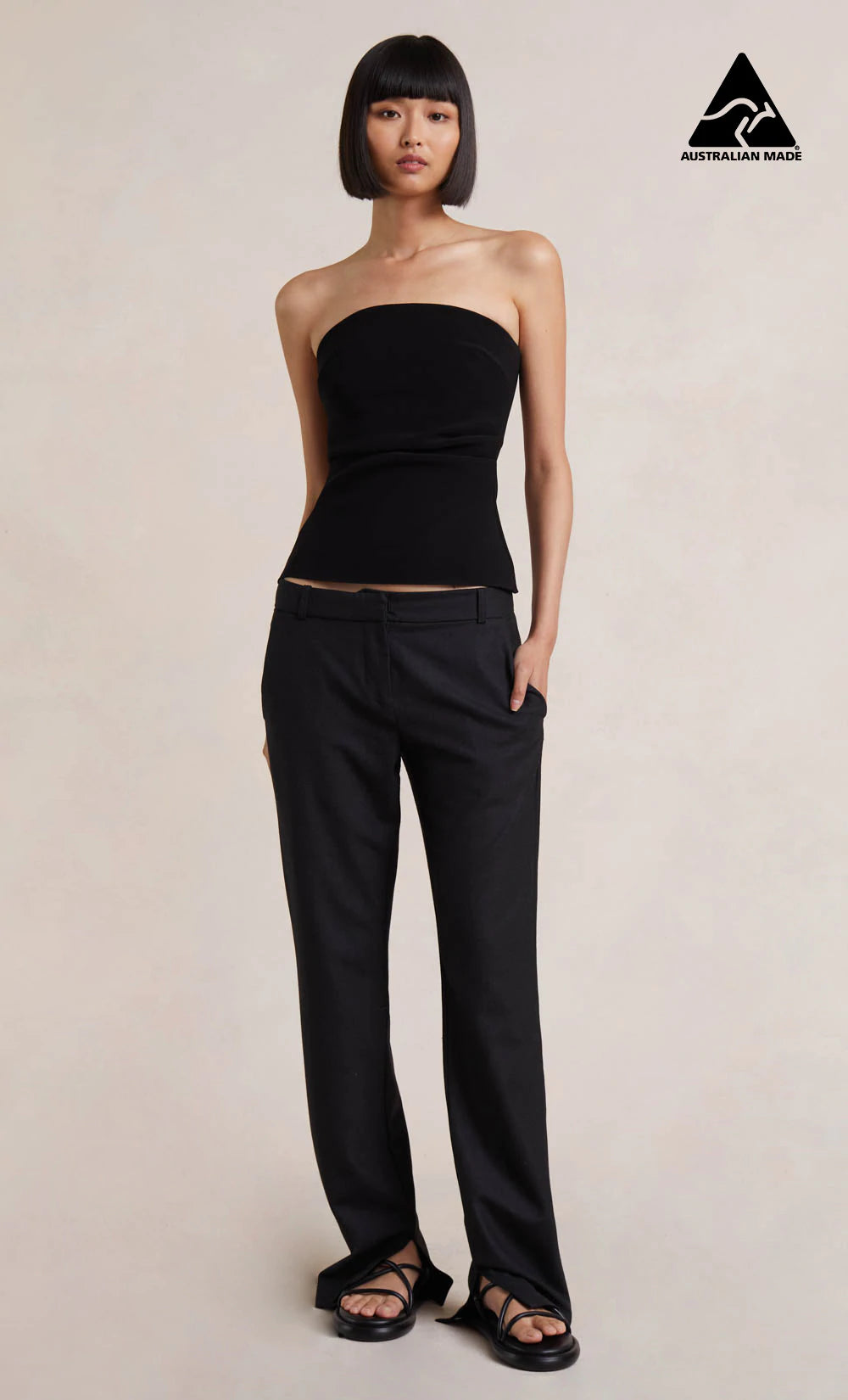 The Chic Adele Bodice is cut from our bonded stretch crepe fabric that cinches in the body and skims the silhouette. The strapless top features a slightly curved neckline and tuck detailing. Styled with our Lee Pant.