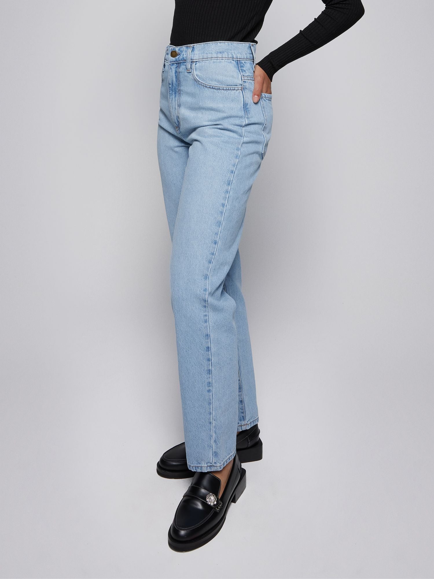 The Andi Jean Petite is a classic made modern. Crafted from a sustainable Rigid Hemp Denim in a Mid Authentic Indigo wash, Mentor. The classic fit features a flattering super high rise, subtle tapered straight leg purposefully designed for an elongated silhouette. Complete with effortless draping and clean details, pair back with any of our Luxe Ribs or elevate with a fully fashioned knit for thoughtful outfitting. Designed in a petite length, specifically for those who are 5ft4 or under.