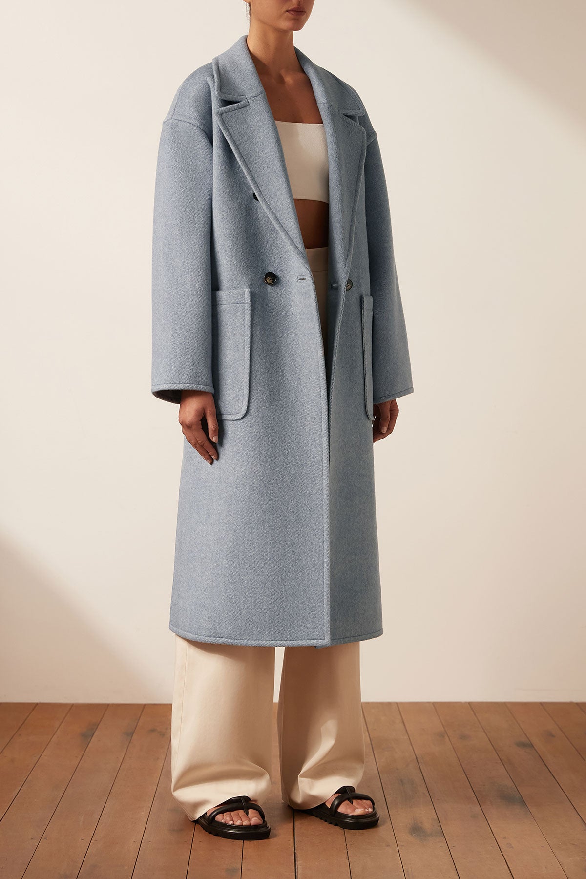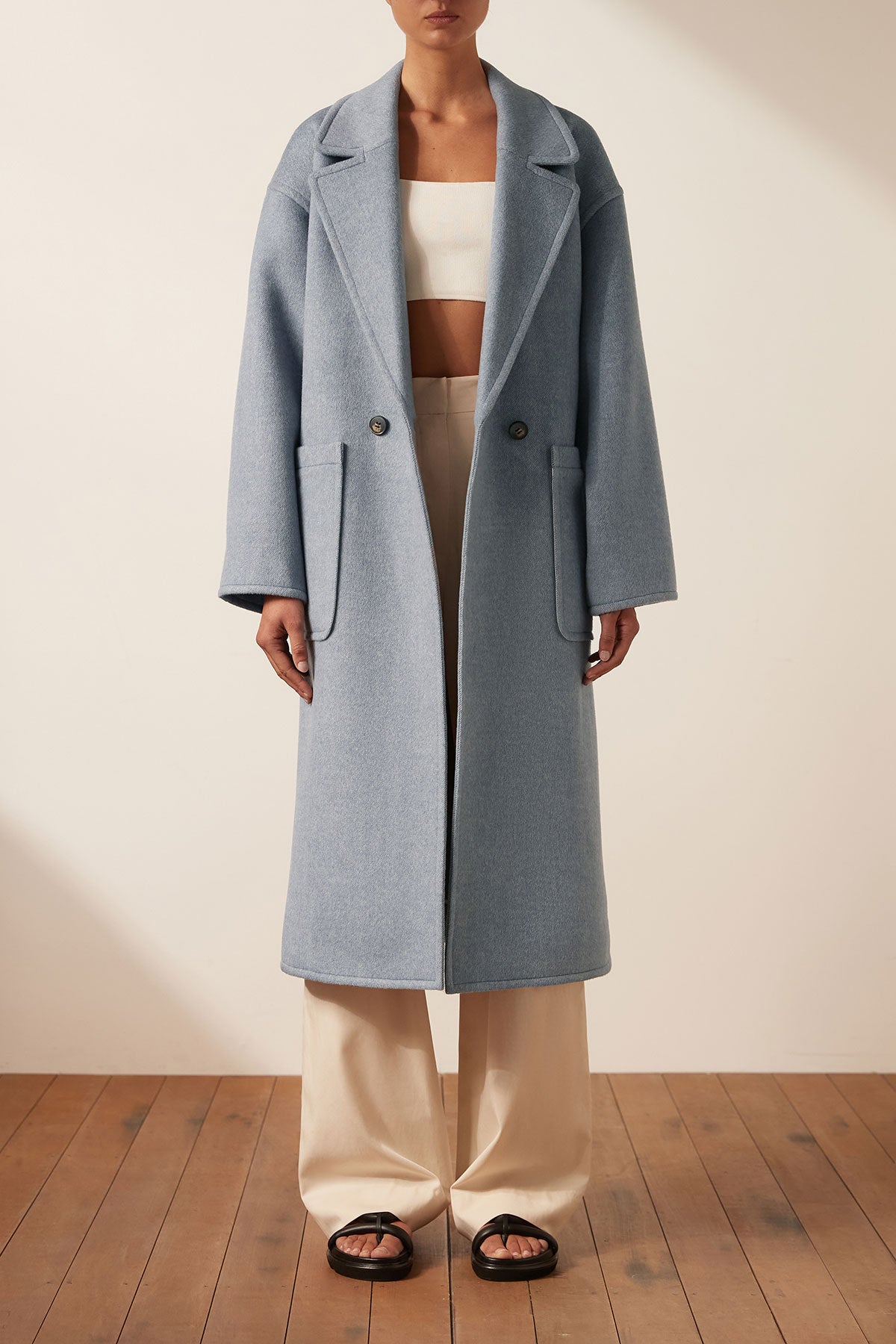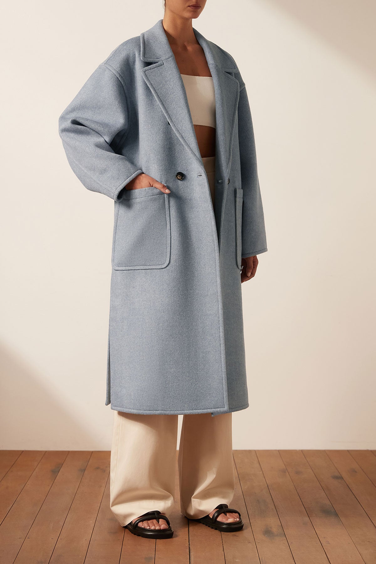 Premium wool blend Wide collar and lapel Double breasted button closure Front patch pockets Side splits Bind finish throughout Oversized longline tailored fit Medium weight, non-stretchy woven 70% Wool 30% Polyester Designed in Australia Made in China Our...Read more