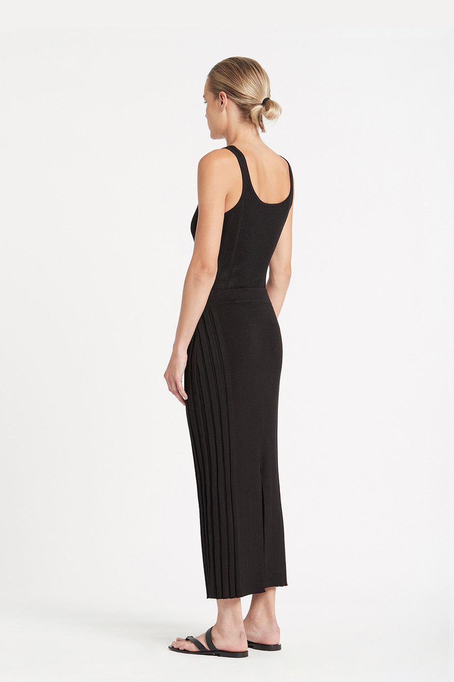 A black ribbed knit singlet.