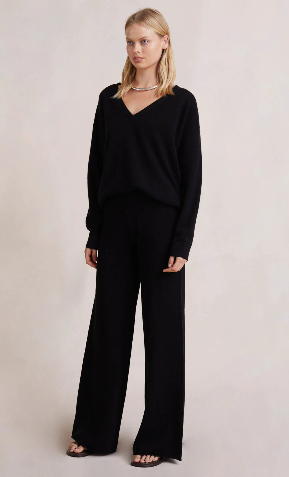 Effortless and easy-to-wear, the Ladina Long Sleeve Knit Top features a longline hem and classic V-neck. Spun from 100% wool, the sweater is cut in a relaxed, slightly oversized silhouette. Styled with our Ladina Knit Pant.
